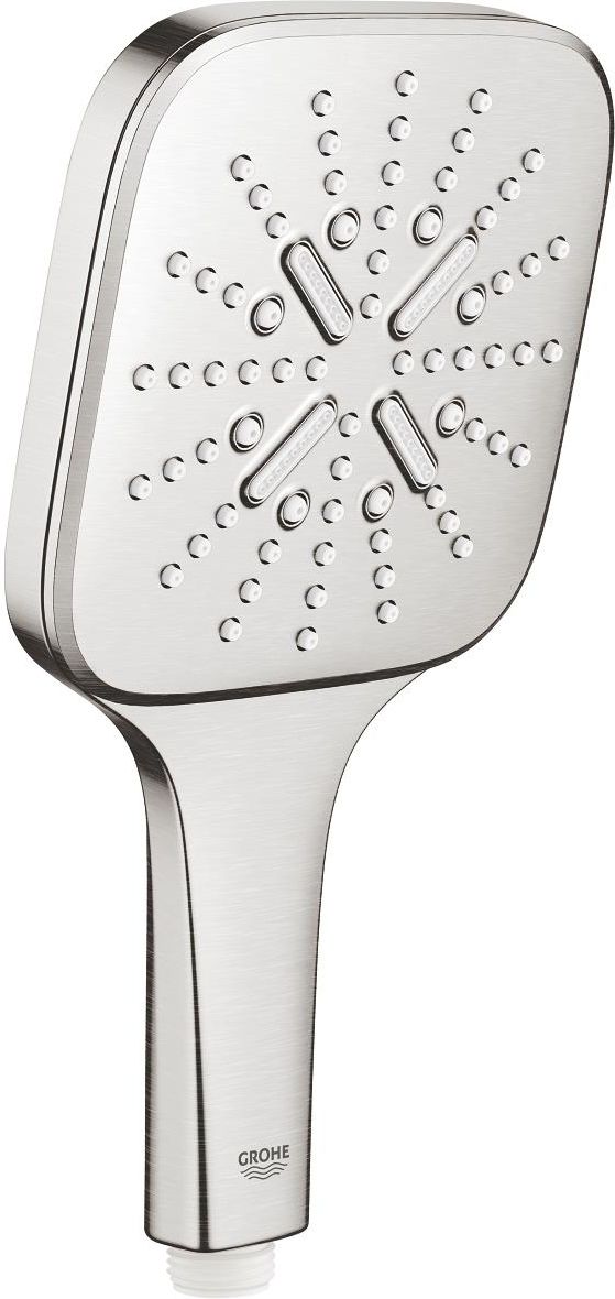 Prysznic ręczny 3 strumienie Rainshower SmartActive Cube 130 rozmiar głowicy prysznicowej 130 x 130 mm strumień prysznicowy: Rain, Jet, Active ogranicznik przepływu GROHE EcoJoy 9,5 l/min doskonałe strumienie wodyGROHE DreamSpray wybór strumienia prysznicowego GROHE SmartTip poprzez naciśnięcie …