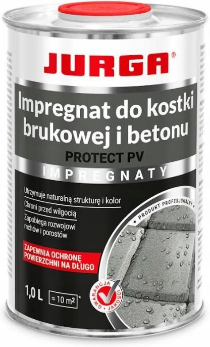 JURGA PROTECT PV | impregnat do kostki brukowej i betonu | 1 l Rozpuszczalnikowy impregnat do kostki brukowej, krawężników, płytek chodnikowych, płotów betonowych, podmurówek, wszelkiego rodzaju galanterii betonowej barwionej i naturalnej oraz innych powierzchni betonowych prefabrykowanych i …