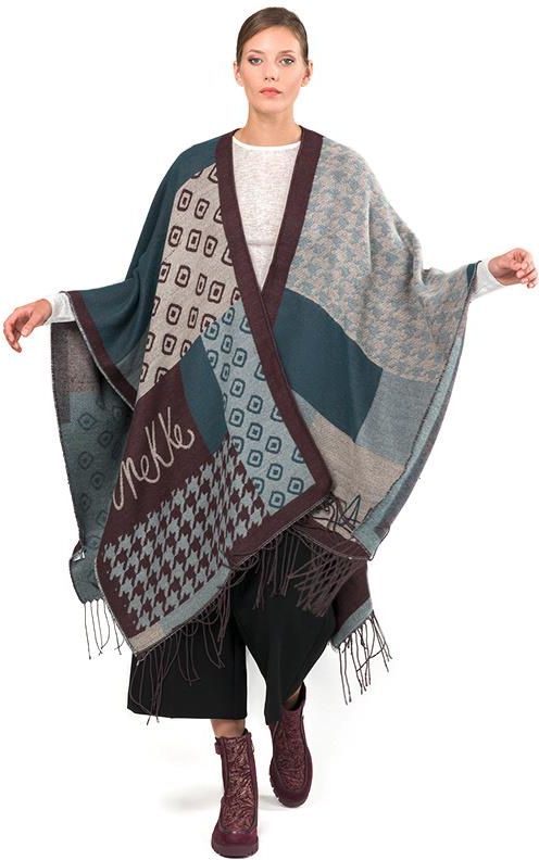 Ponczo damskie Anekke, duże z trwałego materiału we wzory z frędzlami, niebieskie, 41284-031