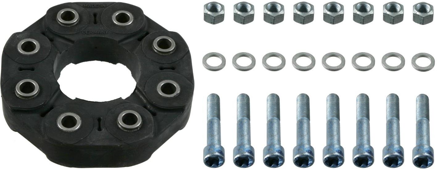 PRZEGUB WAŁU NAPĘDOWEGO 10 92 1199 SWAG MERCEDES Numer katalogowy: 10 92 1199 Producent: SWAG UWAGA! Cena dotyczy 1 sztuki Cechy produktu: Grubość [mm]: 31.9 Ciężar [kg]: 1.463 Materiał: Guma / metal Średnica wewnętrzna [mm]: 70 średnica zewnętrzna [mm]: 160 Liczba otworów: 8 Ø rozmieszczenia otworów [mm]: 120 Artykuł uzupełniający / informacja uzupełniająca: z nakrętkami Artykuł uzupełniający / informacja uzupełniająca 2: ze śrubami uwzględnić informację serwisową W jednym modelu auta, mogą występować różne warianty części. W przypadku niepewności o właściwy dobór części, zalecana jest weryfikacja wg numeru VIN Prosimy również o wizualne sprawdzenie części przed montażem, aby upewnić się, że jest identyczna z oryginalnie zamontowaną. Choć dopasowanie na podstawie numeru VIN ma 99% skuteczności, może wystąpić rozbieżność, ponieważ pojazd mógł wcześniej przechodzić modyfikacje, które nie są uwzględnione w weryfikacji części według VIN. Części oferowane przez nasz sklep przeznaczone są do samochodów produktowanych na rynek europejski. O marce SWAG SWAG jest niemiecką firmą założoną w 1954 roku. Przedsiębiorstwo wyspecjalizowało się w dostawie komponentów na niezależny rynek samochodowych części zamiennych. Firma bardzo szybko zyskała popularność i zaufanie klientów - części samochodowe oznaczone logo SWAG kojarzone są z bardzo korzystnym stosunkiem jakości do ceny. Oferta marki jest bardzo szeroka i dedykowana do większości samochodów produkcji europejskiej, amerykańskiej oraz azjatyckiej. W katalogu SWAG znaleźć można ponad 16 tysięcy części zamiennych, które nie ustępują jakością częściom oryginalnym. Należą do nich między innymi elementy układu napędowego i hamulcowego, a także elementy zawieszenia, elementy silnika i części elektryczne. Na uwagę zasługuje fakt, że produkcja części zamiennych przez SWAG opiera się na takiej samej specyfikacji jak produkcja części pierwszego montażu, dzięki czemu są one nie tylko doskonale kompatybilne, ale również zbliżone jakością. Nie bez powodu marka kojarzona jest z trwałością, wydajnością użytkowania, perfekcyjnym wykonaniem i precyzją. To zasługa bardzo szczegółowej, wieloetapowej kontroli jakości i dużego nacisku producenta na spełnianie najwyższych standardów jakości. Grono zadowolonych z produktów SWAG klientów stale rośnie, a producent robi, co w jego mocy, by nie zawieść zaufania, którym jest obdarzany. Numery OE/OEM A000 411 06 00 A000 411 07 00 A209 410 02 15 A215 410 00 15 A221 410 04 15 A230 410 00 15 A240 410 02 15 A240 410 04 15 A240 410 04 15 S1 A906 411 00 15 A906 411 00 15 S1 A906 411 02 00 000 411 06 00 000 411 07 00 209 410 02 15 215 410 00 15 221 410 04 15 230 410 00 15 240 410 02 15 240 410 04 15 240 410 04 15 S1 906 411 00 15 906 411 00 15 S1 906 411 02 00 Zastosowanie MERCEDES-BENZ MERCEDES-BENZ KLASA C (W203) C 320 CDI (203.020) 224KM/165kW 2005.01-2007.02 MERCEDES-BENZ KLASA C T-Model (S203) C 320 CDI (203.220) 224KM/165kW 2005.06-2007.08 MERCEDES-BENZ KLASA C (W204) C 63 AMG (204.077) 457KM/336kW 2008.02-2014.01 MERCEDES-BENZ KLASA C (W204) C 63 AMG (204.077) 487KM/358kW 2008.02-2014.01 MERCEDES-BENZ KLASA C (W204) C 63 AMG (204.077) 507KM/373kW 2008.02-2014.01 MERCEDES-BENZ KLASA C (W204) C 250 CDI (204.003) 204KM/150kW 2008.08-2014.01 MERCEDES-BENZ KLASA C (W204) C 320 CDI (204.022) 224KM/165kW 2007.01-2014.01 MERCEDES-BENZ KLASA C (W204) C 350 CDI (204.022) 224KM/165kW 2009.07-2014.01 MERCEDES-BENZ KLASA C (W204) C 350 CDI (204.025) 231KM/170kW 2009.10-2014.01 MERCEDES-BENZ KLASA C (W204) C 350 CDI (204.023) 265KM/195kW 2011.06-2014.01 MERCEDES-BENZ KLASA C T-Model (S204) C 63 AMG (204.277) 457KM/336kW 2008.02-2014.08 MERCEDES-BENZ KLASA C T-Model (S204) C 63 AMG (204.277) 487KM/358kW 2012.01-2014.08 MERCEDES-BENZ KLASA C T-Model (S204) C 250 CDI (204.203) 204KM/150kW 2009.01-2014.08 MERCEDES-BENZ KLASA C T-Model (S204) C 320 CDI (204.222) 224KM/165kW 2007.08-2014.08 MERCEDES-BENZ KLASA C T-Model (S204) C 350 CDI (204.225) 224KM/165kW 2007.08-2014.08 MERCEDES-BENZ KLASA C T-Model (S204) C 350 CDI (204.225) 231KM/170kW 2009.10-2014.08 MERCEDES-BENZ KLASA C T-Model (S204) C 350 CDI (204.223) 265KM/195kW 2011.06-2014.08 MERCEDES-BENZ CLK (C209) 500 (209.372) 388KM/285kW 2006.06-2009.05 MERCEDES-BENZ CLK (C209) 63 AMG (209.377) 481KM/354kW 2006.04-2009.05 MERCEDES-BENZ CLK (C209) 320 CDI (209.320) 224KM/165kW 2005.01-2009.05 MERCEDES-BENZ CLK kabriolet (A209) CLK 500 (209.472) 388KM/285kW 2006.06-2010.03 MERCEDES-BENZ CLK kabriolet (A209) CLK 63 AMG (209.477) 481KM/354kW 2006.04-2010.03 MERCEDES-BENZ CLK kabriolet (A209) CLK 63 AMG (209.477) 481KM/354kW 2006.09-2009.12 MERCEDES-BENZ CLK kabriolet (A209) CLK 320 CDI (209.420) 224KM/165kW 2005.03-2010.03 MERCEDES-BENZ CLS (C219) CLS 500 (219.372) 388KM/285kW 2006.04-2010.12 MERCEDES-BENZ CLS (C219) CLS 55 AMG (219.376) 476KM/350kW 2005.01-2010.12 MERCEDES-BENZ CLS (C219) CLS 63 AMG (219.377) 514KM/378kW 2006.04-2010.12 MERCEDES-BENZ CLS (C219) CLS 63 AMG (219.377) 514KM/378kW 2006.09-2010.12 MERCEDES-BENZ CLS (C219) CLS 320 CDI 211KM/155kW 2005.01-2010.12 MERCEDES-BENZ CLS (C219) CLS 320 CDI (219.322) 224KM/165kW 2005.01-2010.12 MERCEDES-BENZ CLS (C219) CLS 350 CDI (219.322) 224KM/165kW 2009.04-2010.12 MERCEDES-BENZ CLS (C218) CLS 500 (218.373) 408KM/300kW 2011.02-2017.12 MERCEDES-BENZ CLS (C218) CLS 63 AMG (218.374) 525KM/386kW 2011.01-2017.12 MERCEDES-BENZ CLS (C218) CLS 63 AMG (218.374) 558KM/410kW 2011.01-2017.12 MERCEDES-BENZ CLS (C218) CLS 63 AMG 4-matic (218.392) 558KM/410kW 2013.05-2017.12 MERCEDES-BENZ CLS (C218) CLS 250 CDI / BlueTEC / d (218.303, 218.304) 204KM/150kW 2011.04-2017.12 MERCEDES-BENZ CLS (C218) CLS 350 BlueTEC / d (218.326) 252KM/185kW 2013.02-2017.12 MERCEDES-BENZ CLS (C218) CLS 350 CDI / d (218.323) 265KM/195kW 2011.01-2014.08 MERCEDES-BENZ CLS Shooting Brake (X218) CLS 500 (218.973) 408KM/300kW 2