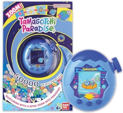 Kultowa zabawka w nowym opakowaniuTamagotchi to kultowa elektroniczna zabawka, która wpłynęła na całe pokolenie. Dzisiaj przygoda trwa z Tamagotchi Paradise w całkowicie przeprojektowanej wersji: 3 światy do odkrywania, ponad 50 dorosłych postaci i unikalne obrotowe kółko do interakcji z twoim wirtualnym zwierzakiem! Odkryj świat Tamagotchi Paradise! Hoduj urocze stworzenia, baw się z nimi i łącz je. EKSKLUZYWNA FUNKCJA ZOOM | Hoduj swoje cyfrowe zwierzęta z miłością, tak jak w przypadku oryginalnego Tamagotchi, ale z wieloma nowymi funkcjami. Tamagotchi Paradise ma unikalną funkcję zoomu, dzięki której można eksplorować różne poziomy świata swojego zwierzaka. WIĘCEJ MOŻLIWOŚCI DOSTOSOWANIA I INTERAKCJI | Rozwijaj swoje zwierzątko za pomocą wariacji genetycznych, wpływu środowiska i diety. Wybierz lądowe, powietrzne lub wodne Tamagotchi, które wpływają na cechy twojego zwierzaka. Odblokowuj przedmioty, odkrywaj hybrydowe gatunki i dekoruj planety za pomocą biopaliwa. ZOOMOWANIE | Twórz i rozwijaj swój raj z wirtualnym pupilem, korzystając z obrotowego kółka z 4 różnymi poziomami: przestrzeń kosmiczna, pole, Tama i komórka. Tamagotchi Paradise pozwala ci radzić sobie z różnymi potrzebami twoich cyfrowych zwierząt na każdym poziomie. WZROST | Twoje interaktywne zwierzątko Tamagotchi będzie się rozwijać na podstawie genów swoich rodziców, środowiska i opieki, jaką mu zapewnisz. Hoduj swoje elektroniczne zwierzęta w sposób naturalny, w laboratorium lub połącz się z przyjaciółmi i odkryj ponad 50 000 różnych kombinacji. WODA | Dowiedz się, jak środowisko Tamagotchi Paradise wpływa na naukę i rozwój twojego wirtualnego pupila, który nabywa przydatne cechy do życia w wodzie, takie jak płetwy czy ogon. Dodaj do środowiska rekwizyty i zabawki, którymi twój interaktywny cyfrowy pupil może się bawić. POŁĄCZENIE | Połącz górną część swojego cybernetycznego zwierzaka Tamagotchi Paradise z pupilem swojego przyjaciela, aby grać w gry, odblokowywać przedmioty i tworzyć hybrydowe gatunki. Użyj zebranych odchodów do produkcji biopaliwa, aby podróżować na inne planety Tamagotchi. Jaka jest różnica między Tamagotchi Paradise a poprzednimi modelami?Tamagotchi Paradise oferuje interaktywne obrotowe kółko, 3 różne światy, ponad 50 dorosłych postaci i połączenie między urządzeniami. Od jakiego wieku Tamagotchi Paradise jest odpowiednie?Ta interaktywna zabawka jest zalecana dla dzieci od 6 roku życia. Ile postaci można odblokować?W zależności od tego, jak dbasz o swoje Tamagotchi i jakie kombinacje wypróbujesz, możliwe jest aż 50 000 różnych kombinacji! są potrzebne 3x baterie AAA (nie są częścią zestawu) wzór: Niebieska Woda materiał: plastik Produkt może zawierać małe części - ryzyko zadławienia i inne elementy, które nie są odpowiednie dla dzieci poniżej 6 roku życia.