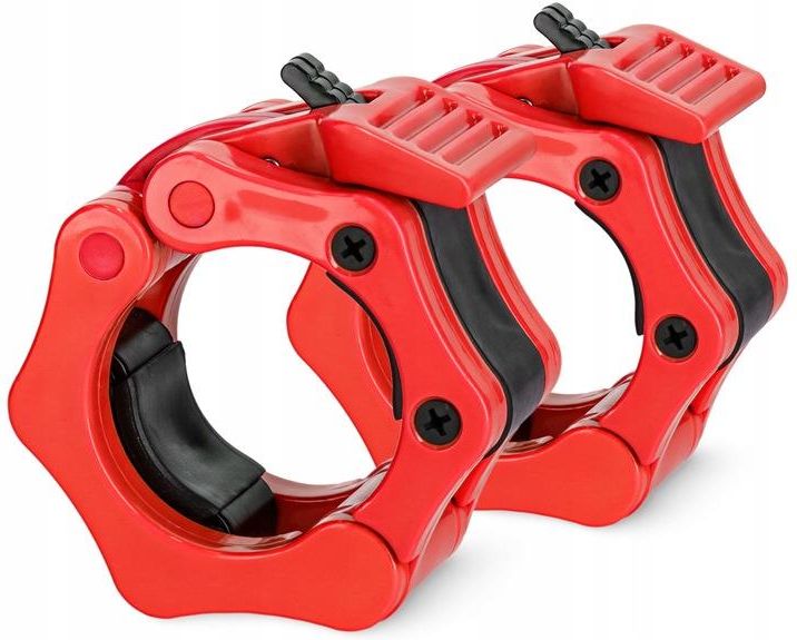 ZACISKI NA GRYF SZCZĘKOWE DO SZTANGI ZABEZPIECZENIE ZATRSZASKOWE QR 2x5 cm Zaciski na gryf olimpijski 50 mm – zaciski QR 4FIZJO Zastanawiasz się, jak zapewnić sobie maksymalne bezpieczeństwo podczas treningu z ciężarami? A może masz w domu sztangę? Potrzebujesz więc jednego prostego, ale bardzo ważnego elementu – zaciski szczękowe na gryf olimpijski 4FIZJO. Bez nich nie możesz rozpocząć ćwiczeń ze sztangą. Dlaczego? Bo podnoszenie ciężarów bez zacisków to najszybsza droga do kontuzji. Ich zadanie jest więc bardzo proste – zabezpieczają one talerze przed zsunięciem z gryfu. Wybierając odpowiednie zaciski, zapewniasz sobie bezpieczeństwo, możesz w pełni skupić się na technice i osiąganiu kolejnych sportowych celów. Zaciski szczękowe na gryf olimpijski 4FIZJO Jeśli szukasz niezawodnego sposobu na pewne i bezpieczne utrzymanie obciążenia na sztandze, to zacisk szczękowy lock QR jest idealnym rozwiązaniem dla Ciebie. Parametry Kolor: czerwony Materiał: polimer Średnicawewnętrzna: 50 mm Rodzaj: Quick Release Liczba zacisków: 2 szt. (1 komplet) Proste użycie i szybkie otwieranie Masz dość zacisków, które trudno zamontować? Zaciski QR Lock są zaprojektowane tak, aby ich obsługa była szybka i intuicyjna. Mechanizm szczękowy umożliwia zamykanie i otwieranie jednym ruchem. Wystarczy klik, aby bez wysiłku zablokować talerze i zabezpieczyć je przed zsuwaniem się po gryfie. To rozwiązanie doceni każdy, kto chce zachować płynność ćwiczeń bez niepotrzebnych przerw. Po co marnować energię na akcesoria, kiedy można ją wykorzystać na doskonalenie techniki? Zaciski QR Lock to oszczędność czasu i gwarancja, że obciążenie zostanie na swoim miejscu podczas całego treningu. Zaciski szczękowe na gryf olimpijski – niezawodność, wytrzymałość i konieczność Zaciski szczękowe, dla gryfów olimpijskich o średnicy 50 mm, zostały zaprojektowane z myślą o solidnym mocowaniu talerzy. Wyróżniają się wytrzymałością i niezawodnością dzięki zastosowaniu trwałego polimeru, który wytrzyma nawet najbardziej intensywne treningi. Gumowa uszczelka pozwala na prawidłowe dociśnięcie zacisku na gryf olimpijski. Skutecznie zapobiega też samoczynnemu przesunięciu się obciążeń, a także redukuje hałas stukających talerzy podczas ćwiczeń. Zaciski do sztangi to niezbędny element zarówno dla zaawansowanych zawodników, jak i osób trenujących rekreacyjnie.