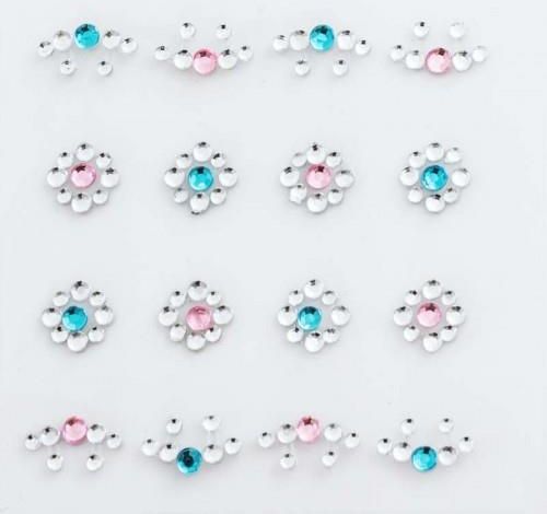 Doskonałe do zdobienia kartek okolicznościowych, pudełek i torebek na prezenty, produktów oprawy ślubnej oraz produktów do wystroju wnętrza. - 16 sztuk w opakowaniu - samoprzylepne - dostępne w kolorze srebrnym z elementami niebieskimi i różowymi