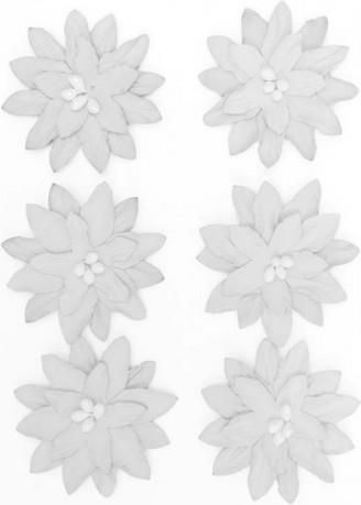 6 sztuk pojedynczych kwiatów w opakowaniu papierowe samoprzylepne dostępne w kolorze: biały, beżowy, szary Doskonałe do zdobienia kartek okolicznościowych, pudełek i torebek na prezenty, produktów oprawy ślubnej oraz produktów do wystroju wnętrza. UWAGA: Towar wysyłany losowo – brak możliwości wyboru wzoru.