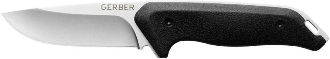 Marka Gerber pewna najwyższej jakości daje 25 lat gwarancji na wszystkie Swoje produkty ! Bardzo poręczny i solidny nóż z kolekcji Hunting firmy Gerber. Zaprojektowany by sprostać najtrudniejszym zadaniom podczas polowania, outdoorowej przygody i nie tylko. Gumowa, teksturowana i antypoślizgowa rękojeść zapewnia pewny chwyt w każdych warunkach. Niezwykle atrakcyjny wygląd i zrównoważona konstrukcja to dodatkowa zaleta tego modelu. Dane techniczne: -Długość ostrza 92mm -Długość całkowita 219mm -Waga: 204g -Konstrukcja full tang -Stałe ostrze Moment™ Large Fixed Blade Knife (typ Drop Point) -Ostrze: gładkie -Typ: nieskładany -Producent: Gerber, USA Cechy: -Teksturowana, gumowa rękojeść o ergonomicznym kształcie posiada matowe, antyodblaskowe wykończenie -Ostrze typu drop point ma wzmocnione właściwości tnące i wytrzymałościowe w okolicach czubka -Na końcu rękojeści posiada praktyczny otwór na sznurek -Konstrukcja full-tang - polega na wypełnieniu całej długości rękojeści przez ostrze co zapewnia bardzo pewne jej mocowanie i minimalizuje możliwość odłamania się ostrza od uchwytu -Nylonowe etui w komplecie
