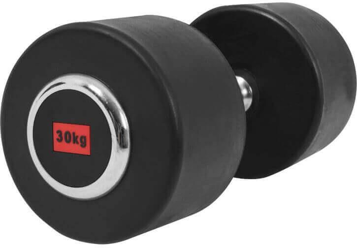 30 kg Hantla żeliwna gumowana stała Typ: stała Liczba hantli w zestawie: 1 Obciążenie: 30 kg Material: żeliwo, guma Długość rączki: 15 cm Średnica wagi: 16,5 cm Całkowita długość hantli: 38,5 cm Do treningu górnych partii mięśni Hantla okrągła daje możliwość ćwiczenia o bardzo szerokim zakresie …