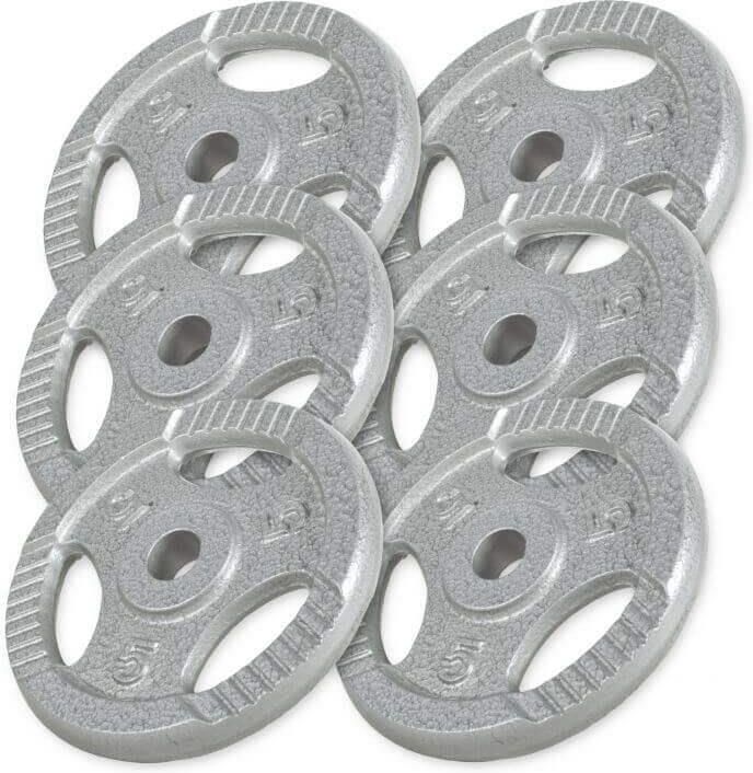 Zestaw obciążeń żeliwnych 6 x 5 kg Wykonane z trwałego żeliwa z wygodnymi uchwytami Wysoka jakość wykonania Wykonanie obciążeń z trwałego żeliwa daje Ci pewność, że kupujesz produkt na lata. Jest to materiał bardzo odporny na uszkodzenia oraz nie niszczy się z upływem czasu. Obciążenie pasuje do wszystkich sztang o średnicy 30 mm. Ergonomiczny kształt Obciążenie o kształcie kierownicy zapewni Ci stabilny chwyt podczas wykonywania brzuszków oraz innych ćwiczeń wymagających trzymania go w rękach. Uniwersalne zastosowanie Bez znaczenia czy jesteś na początkującym czy zaawansowanym poziomie. Dzięki zestawowi obciążeń możesz dopasować poziom trudności do własnych potrzeb co daje możliwość stopniowego rozwoju bez nadmiernego obciążania organizmu.