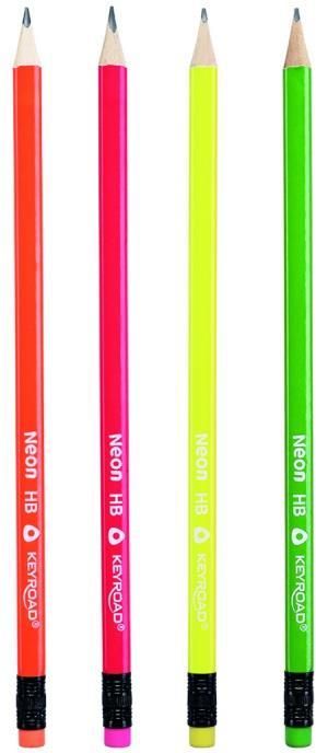 ołówki drewniane trójkątne Keyroad HB z gumką fluorescencyjne mix kolorów - kolor wysyłamy losowo
