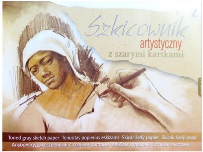 SZKICOWNIK ARTYSTYCZNY Z SZARYMI KARTKAMI A4 Szkicownik artystyczny A4 składa się z 20 kartek szarego papieru o gramaturze 80 g/m2 przeznaczonego do rysowania, szkicowania, projektowania czy kreślenia. Fakturę papieru można określić jako lekko chropowatą. Wkład bloku sklejony jest wzdłuż krótkiego boku, stwarza to komfortowe warunki pracy zarówno w pionie jak i poziomie.Szkicownik owinięty jest okładką z papieru kredowanego. - format A4 210x297 mm - ilośc kartek: 20 - blok zaklejony jest wzdłuż krótkiego boku - gramatura papieru 80 g/m2
