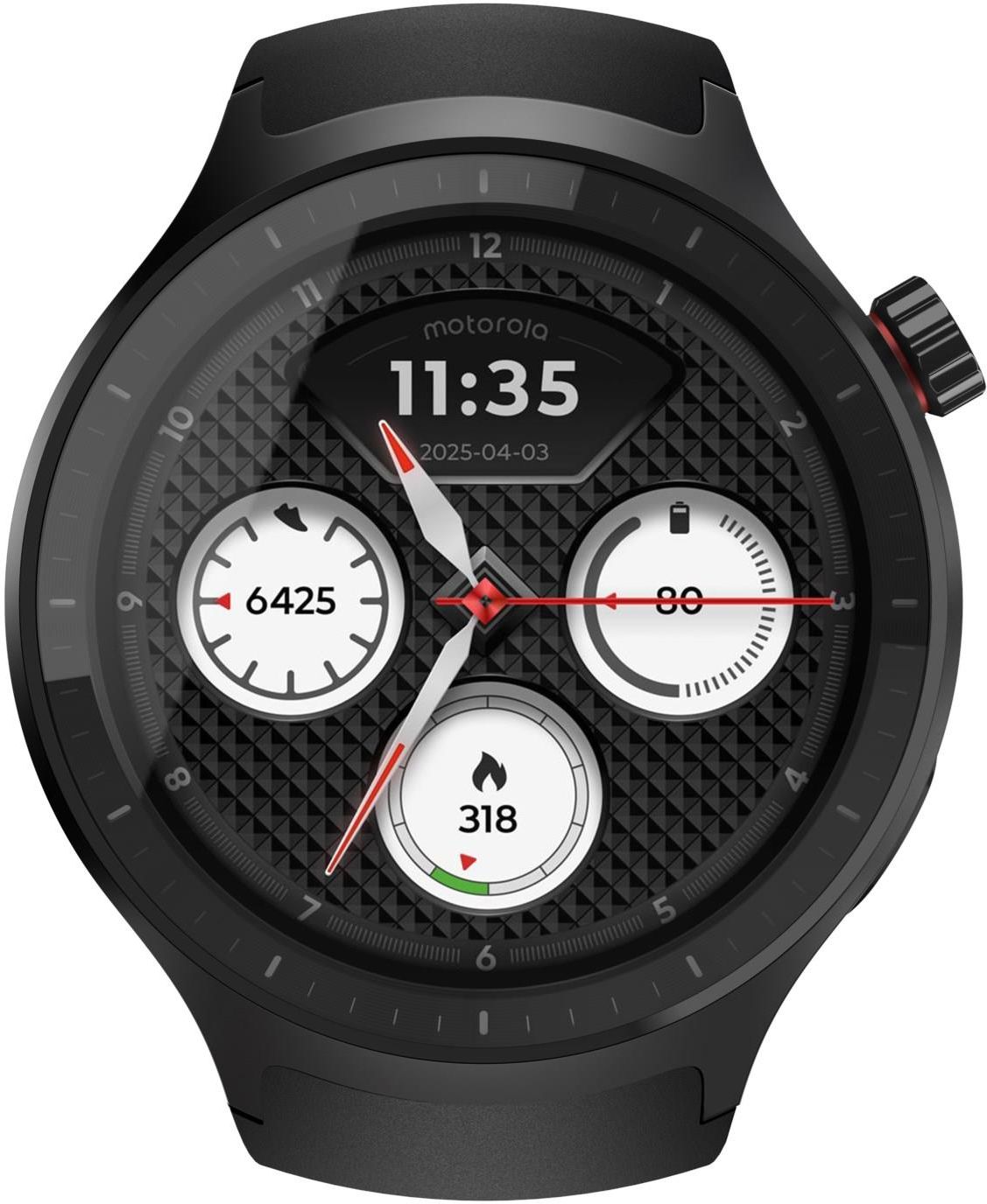 Motorola moto watch Odkryj swój dzień jednym spojrzeniem Monitoruj kroki, kalorie, dystans i poziomy aktywności, aby obserwować swoją codzienną dawkę ruchu i ustawić sobie osiągalne cele   Ponadczasowy design ‑ zaprojektowany, aby służyć przez lata Zegarek moto watch ma wytrzymałą aluminiową obudowę o średnicy 47 mm, szkło Corning® Gorilla® Glass 3 i koronkę ze stali nierdzewnej. Wymieniaj 22‑milimetrowe paski, aby pasowały do każdego stylu.¹   Trenuj inteligentniej dzięki precyzyjnemu monitorowaniu GPS (Global Positioning System) z dwoma częstotliwościami dokładniej mapuje trasy i dystans, pomagając analizować sesje i monitorować postępy.   Wskazówki dotyczące dobrego samopoczucia od Polar® Funkcje wellness oferowane przez Polar zapewniają bogatsze wskaźniki i pomagają utrzymać równowagę między wysiłkiem, regeneracją i codziennymi aktywnościami.   Stały kontakt w zasięgu dłoni Odbieraj połączenia, przeglądaj powiadomienia i na bieżąco odbieraj ważne informacje bezpośrednio na moto watch ‑ bez ciągłego sięgania po telefon.³   Wyświetlacz stworzony, aby się wyróżniać Jasny wyświetlacz OLED (Organic Light-Emitting Diode) z funkcją stale włączonego ekranu i możliwością personalizacji tarczy zegarka, zapewnia czytelność pomiaru czasu, statystyk i powiadomień.   Smartwatch, który pasuje do Ciebie Użyj aplikacji moto watch, aby ustawić i spersonalizować swoje doświadczenia, a moto ai pomoże Ci stworzyć niepowtarzalne tarcze zegarka, które będą odzwierciedlać Twój styl.⁴,⁵.   Czas pracy baterii, który dotrzymuje Ci kroku Urządzenie zapewnia czas pracy baterii wystarczający na treningi, powiadomienia i codzienne rutyny, a w razie potrzeby doładowanie szybko go wydłuży.²   MOTOROLA, logo Stylizowane M, MOTO i rodzina znaków MOTO są znakami towarowymi firmy Motorola Trademark Holdings, LLC. Wszystkie pozostałe znaki towarowe są własnością ich odpowiednich właścicieli. © 2026 Motorola Mobility LLC. Powered by Polar jest znakiem towarowym firmy Polar Electro Oy używanym przez firmę Motorola na podstawie licencji Google i Android są znakami towarowymi Google LLC. BLUETOOTH jest znakiem towarowym Bluetooth Special Interest Group (SIG). USB Type‑C® i USB‑C® są zarejestrowanymi znakami towarowymi USB Implementers Forum. Corning i Gorilla są zarejestrowanymi znakami towarowymi spółki Corning Incorporated. Referencyjne kolory Pantone i PANTONE Chip Design są używane za zgodą firmy Pantone LLC. © Pantone LLC, 2026. Wszelkie prawa zastrzeżone. To jest autoryzowany produkt licencjonowany przez firmę Pantone i wyprodukowany przez firmę Motorola. [1] Kolory i niestandardowe paski Istnieją różnice pomiędzy rynkami. Sprawdź dostępność u swojego operatora lub sprzedawcy. Dodatkowe paski zegarka są sprzedawane oddzielnie. [2] Ładowanie i czas pracy baterii Bateria musi być znacznie rozładowana; szybkość ładowania zmniejsza się wraz z jego postępem. Wszystkie deklaracje dotyczące czasu pracy baterii są przybliżone i dotyczą optymalnych warunków. Rzeczywista wydajność baterii może być inna i zależy od wielu czynników, takich jak ustawienia urządzenia, temperatura, stan baterii i sposoby korzystania z urządzenia. [3] Połączenia na urządzeniu Funkcja połączeń telefonicznych w zegarku moto watch jest dostępna tylko w przypadku połączenia z urządzeniem przenośnym z aktywnym abonamentem telefonicznym. Opłaty operatora, wymagania abonamentowe i dostępność mogą się różnić w zależności od regionu. [4] Bluetooth i aplikacja Moto watch Moto watch wymaga połączenia Bluetooth i aplikacji moto watch. Aplikację moto watch należy pobrać ze sklepu Google Play. Aplikacja moto watch wymaga systemu Android 12 lub nowszego. [5] moto ai Funkcje moto ai są dostępne tylko w wybranych urządzeniach Motorola