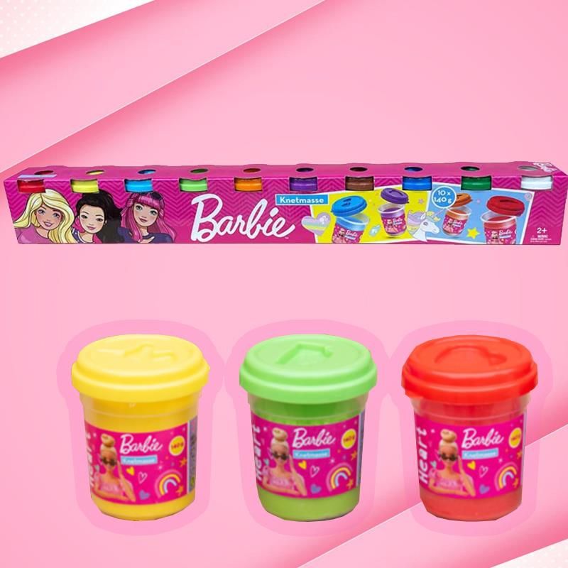 Barbie ciastolina to miękka masa plastyczna, do modelowania, która gwarantuje wspaniałą i bezpieczną zabawę! Rozwija zdolności manualne dziecka, pomaga w rozróżnianiu kolorów oraz pobudza wyobraźnię. Ma piękne, żywe kolory, a nie brudzi rąk! Dzięki niej dzieci mogą wyczarować, co tylko sobie wymyślą! Zestaw Barbie, w którego skład wchodzi 10 różnokolorowych kawałków ciastoliny. Każdy z kawałków ma odrębne opakowanie w kształcie słoiczka. Na każdym wieczku znajduje się również inna foremka do tworzenia kształtów. W zestawie 10 foremek z ciastoliną