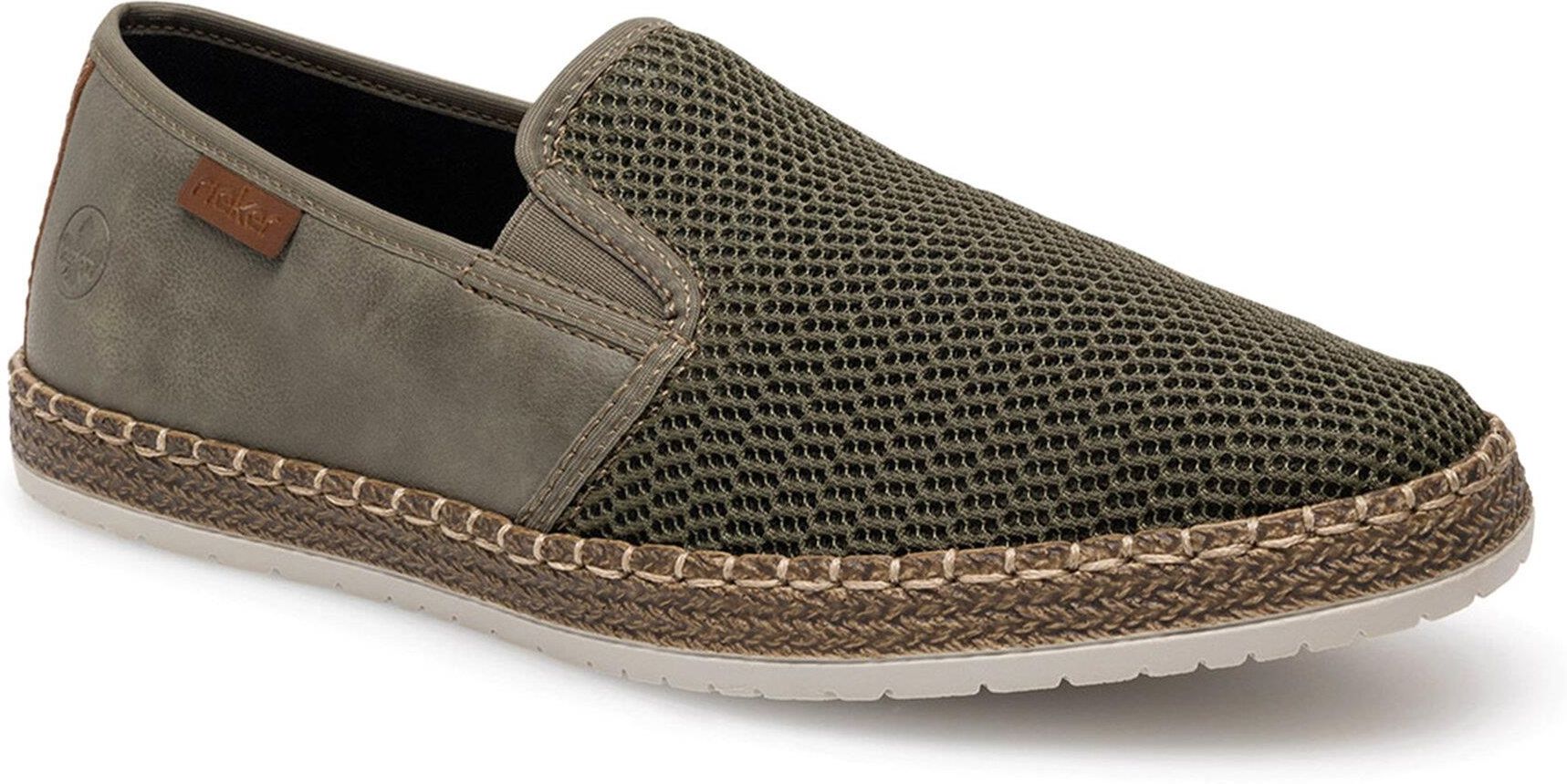 Odkryj wygodę codziennego użytkowania z zielonymi półbutami od marki Rieker! Te casualowe buty, wykonane z włókienniczego materiału, zapewnią Ci lekkość i przewiewność, które są niezbędne w dynamicznym trybie życia. Ich płaska podeszwa to synonim komfortu dla Twoich stóp, a wsuwane zapięcie oznacza, że założenie ich to kwestia sekundy. Okrągły nosek zapewnia swobodę i naturalne dopasowanie do kształtu stopy. Wybierz styl i wygodę na co dzień z półbutami Rieker - idealnym wyborem dla mężczyzny, ceniącego sobie zarówno komfort, jak i miejski styl. Od ponad stu lat marka Rieker oferuje niezwykle komfortowe i trwałe obuwie, które powstaje z myślą o zdrowiu stóp. Dzięki wieloletniemu doświadczeniu w produkcji obuwia, ta niemiecka marka doskonale potrafi łączyć wygodę ze stylem, dlatego w ofercie znajdziesz buty w modnych, oryginalnych fasonach, które każdemu przypadną do gustu. Buty Rieker tworzone są z materiałów wysokiej jakości, przez co odznaczają się wyjątkową elastycznością i trwałością, ale też lekkością. Ponadto w obuwiu stosuje się szerszą formę zapewniającą odpowiednią stabilizację stopy, specjalne podeszwy absorbujące wstrząsy oraz odciążające stawy i kręgosłup, a także wyjmowane wkładki z pianki Memory Foam, która idealnie dopasowuje się do kształtu stóp. To doskonałe produkty dla tych, którzy ponad wszystko cenią sobie komfort. Przekonaj się!