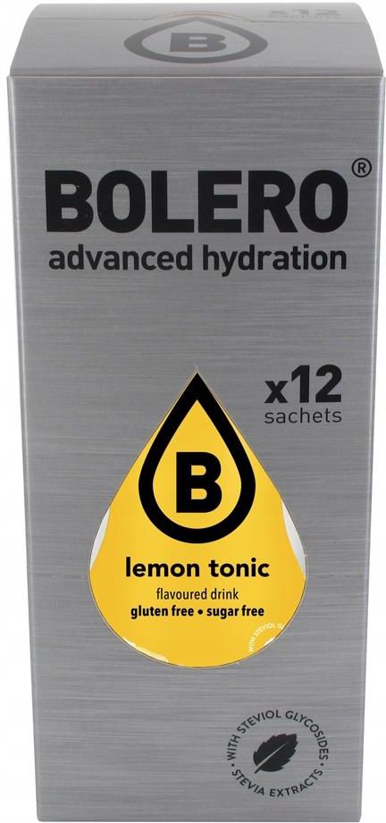 Bolero Classic Instant Drink Lemon Tonik (tonik cytrynowy) - 12 saszetek Bolero Lemon Tonic to orzeźwiający napój w proszku łączący smak cytryny z nutą chininy. Bez dodatku cukru, słodzony naturalną stewią, stanowi zdrową alternatywę dla tradycyjnych napojów gazowanych. Bolero Lemon Tonic to wyjątkowe połączenie świeżego smaku cytryny z charakterystyczną, lekko gorzkawą nutą chininy. Formuła oparta na naturalnych aromatach i barwnikach zapewnia autentyczny smak bez zbędnych dodatków. Napój został stworzony z myślą o osobach dbających o zdrowy styl życia. Bez dodatku cukru, słodzony wyłącznie stewią – naturalnym słodzikiem o niskim indeksie glikemicznym. Dodatek witaminy C wspiera układ odpornościowy i procesy metaboliczne. Składniki 100 ml* RWS _________________________________________________ Wartość energetyczna 8 kJ/ 2 kcal <> Tłuszcz 0 g <> w tym kwasy tłuszczowe nasycone 0 g Węglowodany 0 g <> w tym cukry 0 g Białko 0 g <> Sól 0 g <> Witamina C 6 mg 7,5% _________________________________________________ RWS - Dzienna referencyjna wartość spożycia <> Nie ustalono dziennej referencyjnej wartości spożycia *Podane wartości dotyczą napoju przygotowanego w minimalnej ilości wody zalecanej przez producenta. Dlaczego warto wybrać Bolero Lemon Tonic Bez cukru - idealne dla osób dbających o linię Naturalne aromaty - autentyczny smak Naturalne barwniki - z koncentratu marchwi i kurkuminy Stewia - naturalny słodzik Dodatek witaminy C - wsparcie odporności Sposób przygotowania Z wodą zwykłą (najlepiej schłodzoną) Rozpuść zawartość saszetki w 1,3-4 litrach wody, dostosowując intensywność do swoich preferencji. Dla mocniejszego smaku herbaty użyj mniej wody, dla delikatniejszego - więcej. Z wodą gazowaną Napełnij butelkę maksymalnie do 70% (zostaw 30% wolnej przestrzeni) Dodaj proszek i szybko zamknij pojemnik Delikatnie wymieszaj bez gwałtownych ruchów Poczekaj, aż piana opadnie i ciesz się musującym napojem! Składniki Kwasy: kwasek cytrynowy, kwas jabłkowy; włókno inulinowe; aromaty (chinina); substancje słodzące: acesulfam K, sukraloza, glikozydy stewiolowe; regulator kwasowości: cytrynian sodu; substancja przeciwzbrylająca: fosforan wapnia; substancja zagęszczająca: guma guar, guma arabska; kwas L-askorbinowy (witamina C); barwniki: koncentrat z marchwi, kurkumina. Kod produktu: BOL-8001-BOX