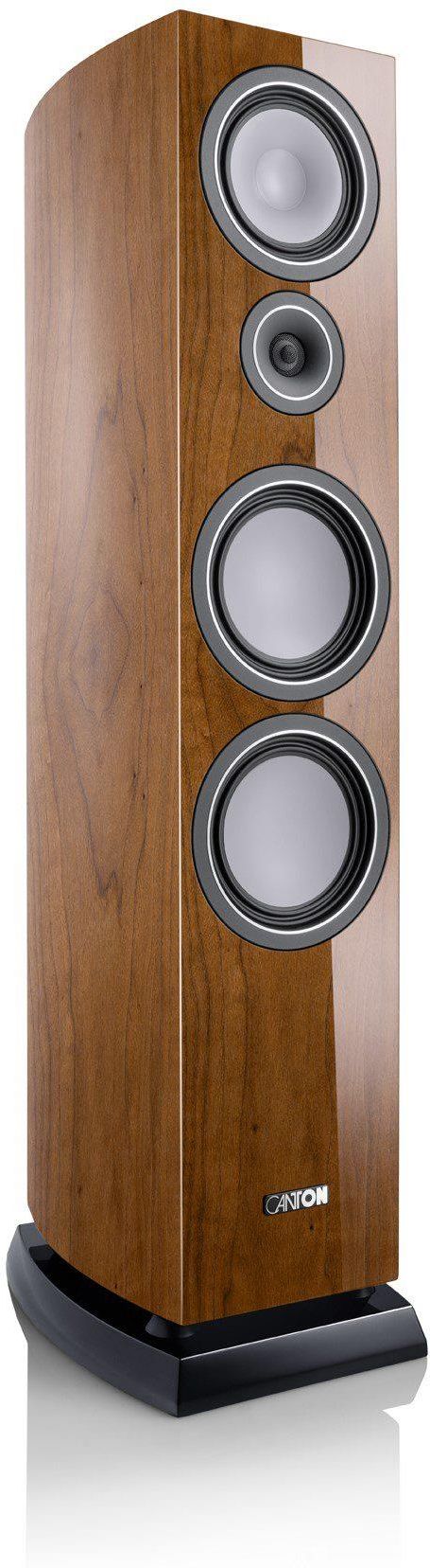 Specyfikacja Zasada akustyczna: 3-drożny system bass reflex Zasada działania rezonatora pasywnego: Bass reflex Kierunek promieniowania rezonatora: Skierowany do dołu Liczba głośników wysokotonowych: 1 Średnica głośnika wysokotonowego: 25 mm Materiał głośnika wysokotonowego: Ceramika Liczba głośników średniotonowych: 1 Średnica głośnika średniotonowego: 174 mm Materiał głośnika średniotonowego: Tytanowo-grafitowy Liczba głośników niskotonowych: 2 Średnica głośnika niskotonowego: 192 mm Materiał głośnika niskotonowego: Tytanowo-grafitowy Moc nominalna: 180 W Moc muzyczna: 340 W Zakres przenoszenia: 20–40 000 Hz Częstotliwości podziału zwrotnicy: 170 / 3 000 Hz Impedancja: 4–8 Ω Regulacja poziomu: Tak Funkcje specjalne Wave Surround (głośnik niskotonowy): Tak Wave Surround (średniotonowy): Tak Podwójny stożek: Tak Transmisyjna płyta czołowa: Tak Technologia przełączania DC: Tak Gniazdo urządzenia w zestawie: Tak Wymiary dodatków (szer. × gł. × wys.): 4 × 4 × 6 cm Przygotowanie do montażu absorberów: Tak Zaciski Bi-Wiring/Bi-Amping: Tak Zaciski Easy Link: Tak Technologia TCC: Tak Kompatybilność z wtykami bananowymi: Tak Korekcja akustyki pomieszczenia: Tak Wymiary i waga Wymiary urządzenia (szer. × wys. × gł.): 29 × 110,5 × 38 cm Waga urządzenia: 29,7 kg Wymiary opakowania: 119 × 48,5 × 35,5 cm Waga opakowania: 33,5 kg Nowoczesny wygląd nowych VentoSerię premium Vento odświeżyliśmy pod względem wizualnym i technicznym. Dzięki współczesnemu wzornictwu z delikatnie wygiętymi bokami, zaokrąglonymi krawędziami obudowy oraz perfekcyjnie wykończonym, wysokiej jakości powierzchniom, nowe kolumny Vento prezentują się niezwykle pewnie. Harmonijnie proporcjonalne głośniki zapewniają idealną równowagę między elegancją a potężną mocą – dlatego sprawdzą się w najróżniejszych przestrzeniach. Drugim co do wielkości modelem w tej serii jest Vento 90: okazała, trójdrożna kolumna podłogowa bas‑refleks o wysmakowanym wyglądzie. Dzięki wybitnym rozwiązaniom technicznym i znakomitemu rozwojowi dźwięku zadowoli zarówno audiofilów, jak i miłośników wysokiej dynamiki. Vento 90 doskonale radzi sobie z każdym repertuarem, oferując nieporównywalne brzmienie Canton, najwyższą trwałość i najlepsze wykonanie. Titanium Graphite – wysoka jakość Vento 90 wyposażono w nowo opracowane przetworniki średnio‑ i niskotonowe z membranami titanium graphite. Matowo połyskujące membrany nadają kolumnom dyskretną elegancję i szlachetny wygląd, harmonijnie wtapiając się w lakierowane na wysoki połysk fronty bez widocznych śrub. Technologia podwójnego stożka oraz zawieszenia Wave, zdolne do wyjątkowo dużych wychyleń, zapewniają imponującą dynamikę. Nowe przetworniki są bardzo sztywne, świetnie wytłumione i pracują jak idealne tłoki akustyczne, co gwarantuje precyzyjne odtwarzanie sygnału bez strat. Efekt: głośniki brzmią dynamicznie i zarazem swobodnie w każdym gatunku muzyki. Szlachetne obudowy – najlepsze brzmienie Nowe obudowy nie tylko wyglądają ekskluzywnie, ale także spełniają wysokie wymagania techniczne. Zwiększona objętość wewnętrzna poszerzyła pasmo przenoszenia w dole zakresu, dzięki czemu kolumny grają z jeszcze lepszym konturem i czystością. Ostrzejsze krawędzie, zmodyfikowana podstawa i nowy kształt ograniczają zniekształcenia generowane przez samą obudowę. Przeprojektowany cokół sprawia, że Vento 90 zdaje się „unosić” nad podłogą, nadając jej dyskretną elegancję i ułatwiając ustawienie w pomieszczeniu. Dostępne wykończenia – biały lub czarny lakier high gloss – pozwalają łatwo dopasować kolumny do wielu stylów wnętrz. Obudowy nowych Vento wyróżniają się również najwyższą jakością wykonania i wykończenia. Uwaga na detale Zaciski głośnikowe w nowych modelach Vento przeprojektowano wizualnie i technicznie, aby zapewnić maksymalną przewodność. Solidne terminale – jedno‑ lub bi‑wiringowe, w zależności od modelu – akceptują przewody o przekroju do 10 mm² i umożliwiają podłączenie kabli z wtykami bananowymi lub widełkowymi. Wykonane z wysoce przewodzącego materiału i wyposażone w drobniejszy gwint, zapewniają kontakt na poziomie referencyjnym, gwarantując perfekcyjny dźwięk i trwałe połączenie z wzmacniaczem. Innowacje serii Vento obejmują także wysokogatunkowe maskownice z tkaniny: w razie potrzeby dyskretnie zasłaniają przetworniki, mocując się do frontów za pomocą silnych magnesów. Prosty górny i delikatnie wygięty dolny panel w czerni tworzą spokojną, ponadczasową estetykę.