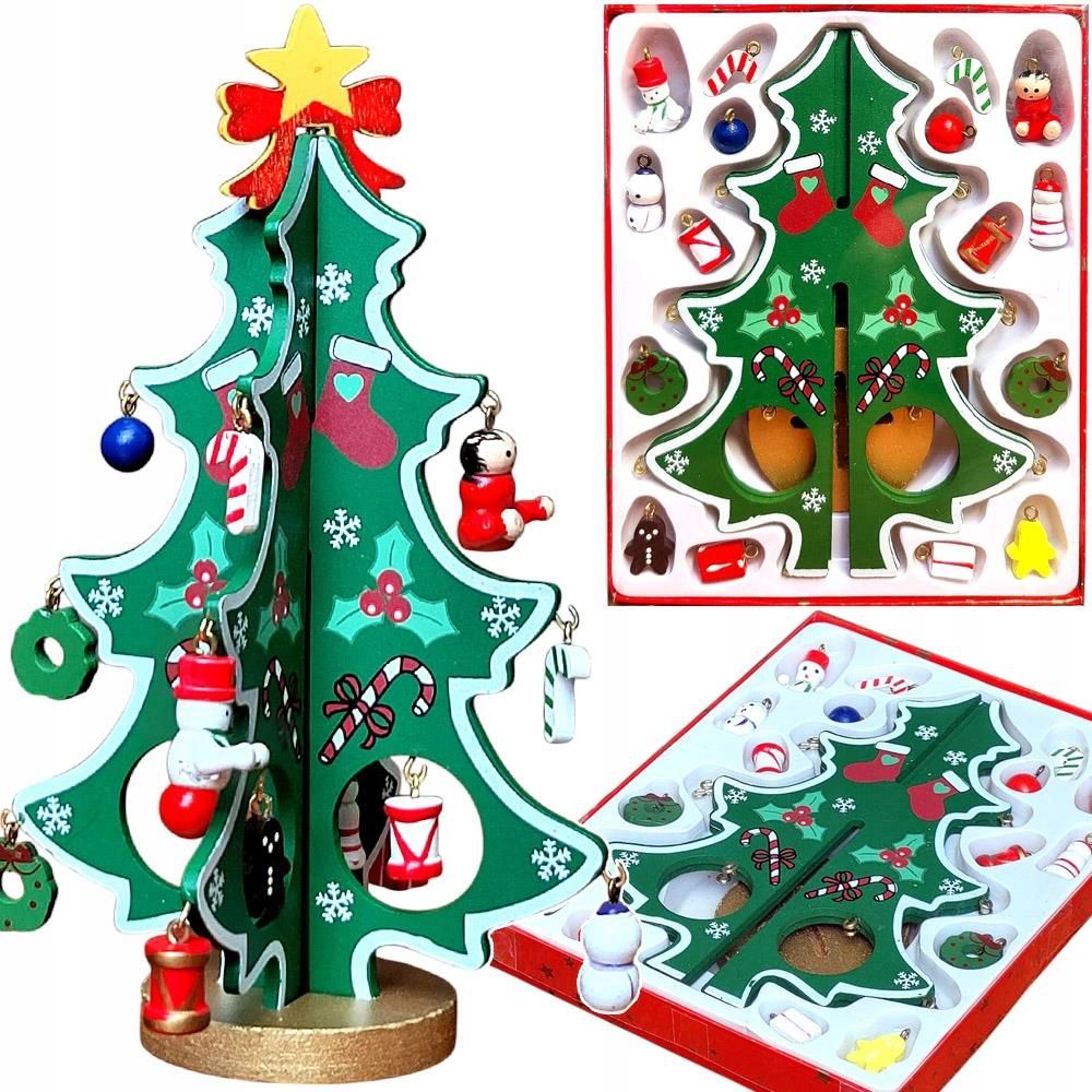 Drewniana Choinka i Bombki na Choinkę Zestaw Ozdoby Świąteczne z drewna Krzeszowice