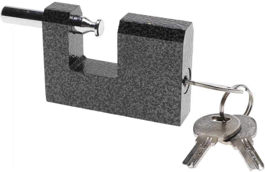 KŁÓDKA TRZPIENIOWA Cechy produktu: Kłódka wykonana z wysokiej jakości stali Solidna konstrukcja W zestawie trzy klucze Rozmiar: 80 mm