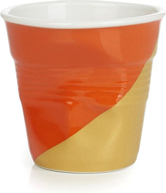 , 0, pomarańczowy, ► Kubeczek Revol Froisses Twist Orange Up 80 ml Oryginalny pomysł na stworzenie tak wyjątkowego kształtu kubka narodził się w firmie REVOL. Mimo prób innych producentów, nikt nie zdołał osiągnąć tego samego stopnia precyzji i wyrafinowania co pierwowzór.Ten kubek to nie tylko zwykłe naczynie do kawy. Jego możliwości są ograniczone jedynie wyobraźnią. Niektórzy zbierają kubki z serii FROISSES, inni wykorzystują je jako element dekoracji wnętrza lub przechowują w nich ołówki. Zdarza się także, że kubek ten pełni rolę pojemnika na szczoteczki do zębów.W tradycyjnym zastosowaniu doskonale sprawdza się jako naczynie do napojów, pucharek na lody, oryginalna filiżanka do espresso lub cappuccino.Seria FROISSES jest dostępna w siedmiu różnych rozmiarach, dwudziestu kolorach i posiada aż 61 różnych wzorów.Dodatkowo, kubek można bezpiecznie używać w zmywarkach, piekarnikach i mikrofalówkach.Ten produkt jest odporny na mycie w zmywarkach i na zadrapania. W jednym opakowaniu znajduje się jeden kubek, a cena podana jest za sztukę. ► Cechy produktu: ✓ Wykonany z porcelany pokrytej kolorową emalią.✓ Nadaje się do użycia w piekarniku, kuchence mikrofalowej i zamrażarce.✓ Można myć w zmywarce.  ► O marce Revol: Revol to marka z 250-letnią tradycją, w której porcelana jest harmonijnym połączeniem tradycji i nowoczesnego designu.DZIEDZICTWO REVOLOd roku 1768, rodzina Revol stawia sobie za cel osiągnięcie piękna i funkcjonalności w swoich wyrobach. Bogata historia marki stanowi pierwsze źródło inspiracji, a jej otwartość na innowacje przyczynia się do doskonałego wsparcia Twoich kulinarzych kreacji.Duma i radość regionu Drôme w południowo-wschodniej Francji zapoczątkowały historię Revol Porcelain, tworząc nierozerwalne więzy między tym ziemiom a rodziną przedsiębiorców przez dziewięć pokoleń.To właśnie na tej ziemi, obfitującej w kaolin i inne surowce niezbędne do produkcji ceramiki najwyższej jakości, powstała fabryka, w której produkuje się teraz uznaną na całym świecie wyjątkową porcelanę. Unikalna kompozycja surowców stała się symbolem marki. Jednak długoletnie przetrwanie Revol zawdzięczamy energii i wizji różnych dyrektorów przez dziewięć pokoleń.Ludzie związani z marką Revol połączyli swoją niezwykłą wiedzę z pragnieniem ciągłego poszukiwania nowoczesnych rozwiązań i innowacji. Marka ta, początkowo niewielka manufaktura, stała się z biegiem lat znakiem doskonałości w dziedzinie porcelany kulinarnej, niezmiennie trwając przy swoich korzeniach i wartościach, na których została założona.