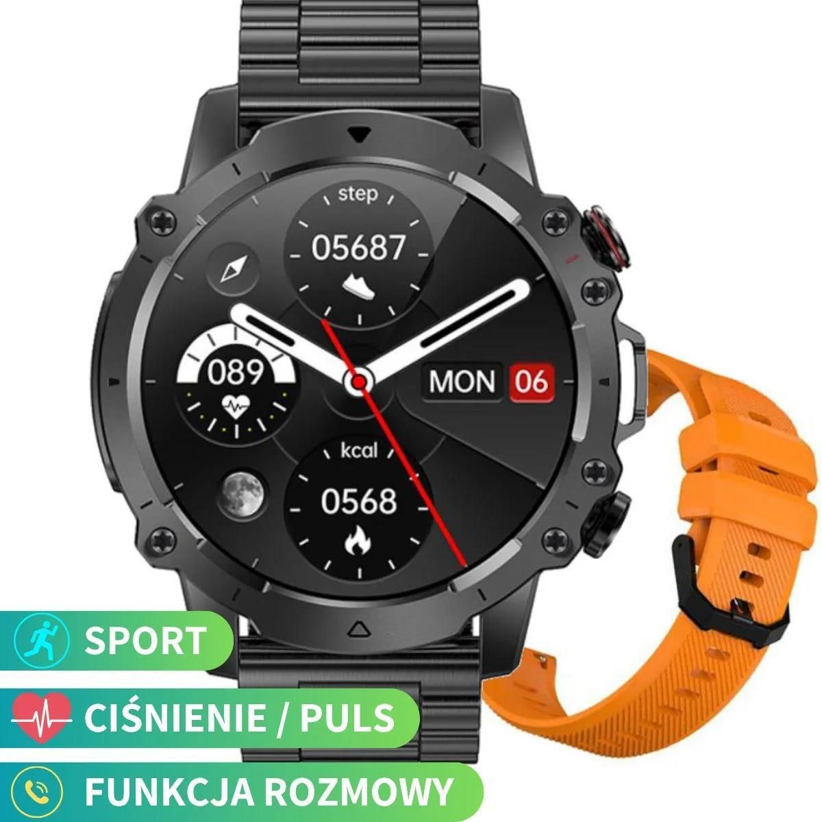 Zegarek SMARTWATCH Numer produktu: RNCF18 Smartwatch od producenta marki Rubicon. Stalowa koperta została połączona ze stalową bransoletą + dodatkowym silikonowym paskiem. Koperta stalowa nie zawiera niklu, jest HiPOALERGiCZNA ! Smartwatch o stylu sportowym sprawdzi się nie tylko podczas aktywności fizycznej, ale i również na codzień. Zegarek może być sparowany z systemami: iOS 9.0/Android 4.4 lub nowszymiDedykowana aplikacja: "?" do pobrania z Google Play, Apple Store).Wodoszczelność klasy IP67 -Klasa wodoodporności IP67 sprawia, że nie musisz obawiać się zachlapania przy myciu rąk oraz pyłu i kurzu. Nie jest przeznaczony do pływania, należy unikać również gorącej wody. Funkcje: Prowadzenie rozmów przez BLUETOOTH! Powiadomienia: SMS, Facebook, Twitter, Whatsapp Krokomierz, kalorie, dystans Odtwarzacz muzyki Monitor snu Monitor pracy serca Ciśnieniomierz Monitor tętna Budzik Tryby sportowe Motywy do woboru Zdalne zdjęcia Informacje o pogodzie Wybór języka Specyfikacja wyświetlacz MULTIdotyk HD IPS 1.43" wysoka rozdzielczość: 360*360 pikseli tarcza: motywy do wyboru + tarcze do pobrania z aplikacji! + własne tarcze! animowana grafika ! procesor: Realtek8763EWE Bluetooth 5.1! ( oszczędny i szybki ) wodoszczelność IP67: odporny na zachlapania koperta stalowa, nie zawiera niklu, jest HiPOALERGiCZNA ! możliwość wymiany paska ( ? mm) Super Bateria: 400mAh współpraca z oprogramowaniem iOS i Android aplikacja: ? wymiary koperty: szer. 47 mm x gr. 13 mm długość całkowita: 260 mm kolor: czarny ( koperta ) czarny( stalowa bransoleta) pomarańczowy (pasek z tworzywa sztucznego) ★ Zsynchronizowany wyświetlacz z telefonem, przypomina o połączeniu oraz wiadomości ★ Choć inteligentne zegarki zazwyczaj kojarzą się z trybami sportowymi, wiele modeli dostępnych na rynku może posłużyć również do prowadzenia rozmów. Dzięki temu nie tylko nie przegapisz ważnej rozmowy, ale również nie musisz w pośpiechu szukać telefonu, by ją odebrać. Smartwatch, przez który można rozmawiać, sprawia, że nie musisz odrywać się od wykonywanych czynności. Jest to korzystne także na siłowni, w trakcie wyjazdów, a nawet podczas prowadzenia samochodu. Zegarki tego typu mają bowiem własne głośniki, dlatego z powodzeniem da się go traktować jako zestaw głośnomówiący. Podnieś rękę, aby zobaczyć powiadomienia, dzięki czemu nie przegapisz żadnych ważnych informacji. Bez sięgania po telefon, wszystkie te komunikaty zobaczysz bezpośrednio na ekranie swojego smartwatcha. Po sparowaniu urządzenia z telefonem, możemy odbierać połączenia, ręcznie wybierać numer lub wyświetlić kontakty z telefonu, a dzięki wbudowanemu zestawowi głośnomówiącemu prowadzić rozmowy. W aplikacji jest również możliwość dodania najczęściej wybieranych numerów telefonu, natomiast w smartwatchu klawiatura do ręcznego wpisania numeru. ★ Pomiar tlenu we krwi, tętna oraz ciśnienia za jednym kliknięciem ★ Zadbaj o swoje zdrowie ★ Nowoczesne smartwatche dla sportowców oferują zróżnicowane funkcje, które nie tylko wspierają trening użytkownika, pozwalając mu przeanalizować efektywność wysiłku fizycznego, ale dbają także o jego zdrowie. Wyniki badania są dostępne w ciągu kilku sekund, a dane są wyświetlane na ekranie zegarka. Synchronizuj dane z aplikacją na telefon komórkowy, aby mieć oko na swój stan zdrowia. Dzięki temu zegarkowi masz świadomość, jak Twoje ciało reaguje w różnych sytuacjach. Wszystkie te dane możesz zapisywać w aplikacji, dzięki czemu tworzy się historia Twoich wyników. ★ Tryb multisport ★ Każda aktywność fizyczna jest bardzo ważna dla zdrowia. Pomaga nam utrzymać dobrą kondycję i dobre samopoczucie. Rubicon oferuje urządzenia, które pomogą nam to osiągnąć. Dostępnych opcji jest naprawdę dużo. Zarówno w kwestii wyboru dyscyplin jak i sposobów planowania oraz realizacji treningów. Warto wybrać odpowiednią dla nas formę ruchu. Wbudowane tryby sportowe poprawią Twoją wydajność fizyczną, dodają energii i pozytywnie wpłyną na stan umysłu (chodzenie, bieganie, jazda na rowerze, koszykówka, badminton, piłka nożna) pozwalają podczas aktywności fizycznej włączyć odpowiedni tryb ćwiczeń, obliczyć zużycie kalorii, liczbę kroków, a także tempo oraz stworzyć własny plan treningowy dla celów zdrowotnych. Niech ten smartwatch zostanie Twoim osobistym trenerem, który zmotywuje Cię do regularnej aktywności! ★ Popraw jakość swojego snu!★ Odpoczynek, relaks i wysypianie się to 3 filary bardziej produktywnej pracy, lepszego samopoczucia, większej ilości energii, a także dobrego wyglądu. Monitor snu pozwala ocenić, ile trwają fazy naszego snu (głębokie, płytkie), jego czas trwania oraz czuwania. Wszystkie te dane zapisywane są w aplikacji, a dzięki ich monitorowaniu możesz poprawić jakość oraz głębokość swojego snu, co spowoduje, że wstaniesz rano wypoczęty i zrelaksowany. Jest to czynność, która pozwoli lepiej poznać swój organizm, dostosować plan dnia oraz potrzeb. ★ Krokomierz ★ Krokomierz to przydatne urządzenie umożliwiające monitorowanie aktywności i dokładne liczenie kroków. Chodząc spalamy kalorie, co umożliwia kontrolowanie masy naszego ciała. To technologia, która może współpracować z krokomierzem lub modułem GPS z telefonu. Dzięki temu możliwa jest szczegółowa analiza treningów oraz kontrola wyników sportowych. Chodzenie to jedno z najprostszych ćwiczeń, które poprawi Twoją wydajność fizyczną, doda energii i pozytywnie wpłynie na stan umysłu. ★ Odtwarzanie muzyki ★ Słuchanie muzyki uruchamia w nas szereg zbawiennych procesów, które poprawiają nasze codzienne samopoczucie, chronią przed chorobami i zwiększają naszą wydajność. Jeśli jesteś osobą aktywną, która podczas uprawiania sportu lubi posłuchać swojej ulubionej muzyki, ten smartwatch daje taką możli