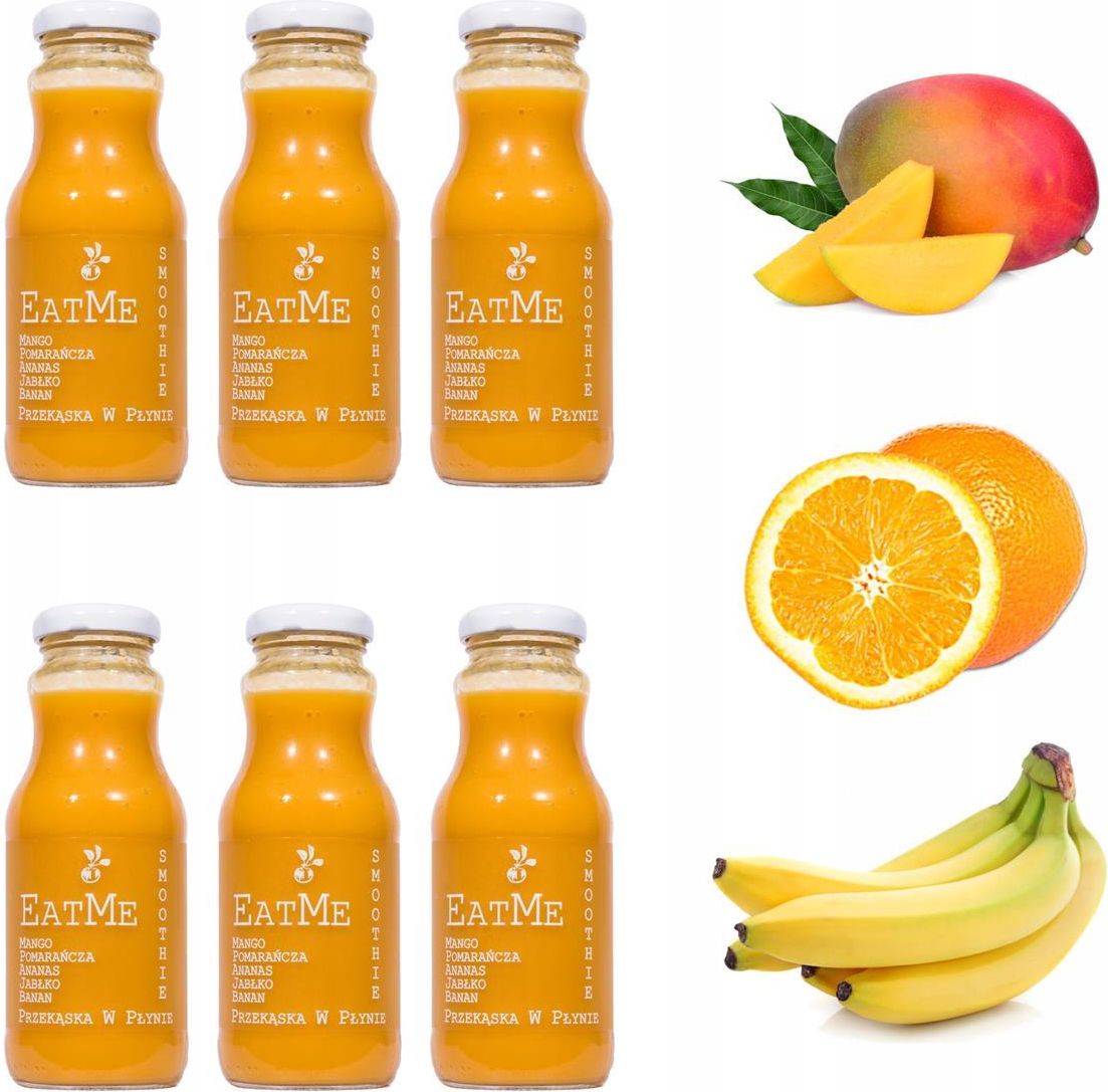 Mus DLA DZIECI 100% pomarańcz mango 6x240ml DESER naturalny na piknik 6x Smoothie mus owocowy EatMe Pomarańczowe 240ml Skład Sok z pomarańczy 30%, przecier z jabłek 26%, sok z ananasa 19%, przecier z mango 17%, przecier z banana 8% wzbogacony witaminą C. Pasteryzowany. Objętość netto 6x240ml …