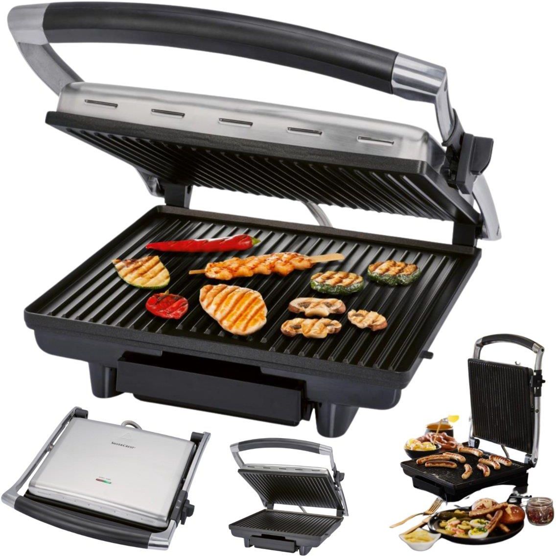 GRILL ELEKTRYCZNY OPIEKACZ TOSTER DO KANAPEK PANINI SILVERCREST SPM 2000 E2 Opis produktu Obudowa z łatwą w pielęgnacji i trwałą okładziną ze stali nierdzewnej Odlewane ciśnieniowo aluminiowe płyty grillowe z wysokiej jakości powłoką nieprzywierającą firmy ILAG® Zmienne ustawienie styku górnej …
