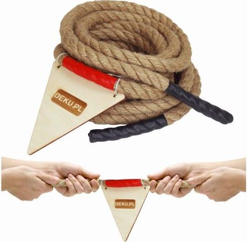 Deku Jutowa Lina animacyjna do przeciągania 30 metrów Lina wykonana jest z bardzo wytrzymałej, wysokogatunkowej juty, stworzona z nietoksycznych oraz atestowanych włókien. To wszystko sprawia, że nasze liny są bezpieczne dla dzieci oraz bardzo wytrzymałe. Lina do przeciągania, to nie tylko wspaniała zabawa dla całej rodziny, ale i pomoc dydaktyczna. Liny animacyjne wykorzystywane są w szkołach, przedszkolach, na zajęciach rekreacyjno-ruchowych, na obozach animacyjnych, na zajęciach pozalekcyjnych oraz podczas zabaw w domu i w ogrodzie. Lina przeznaczona jest dla dzieci, młodzieży oraz dla dorosłych, może służyć jako lina do przeciągania, lub do skakania, ale ma również wiele innych zastosowań. Lina ma udźwig nawet 150 kg, więc można swobodnie na niej się huśtać. Na środku liny zamontowany jest trójkąt i czerwona taśma, które wyznaczają środek liny i dzięki nim łatwo można wyłonić zwycięzcę zabawy! Z lin jutowych mogą skorzystać również: firmy organizujące festyny, zabawy na świeżym powietrzu organizatorzy: zielonych szkół i obozów szkoły przedszkola domy kultury Lina wykonana jest z bardzo wytrzymałego, wysokogatunkowego materiału, nietoksycznego i atestowanego, któremu nie straszna jest wilgoć i zabawa na zewnątrz. To wszystko sprawia, że nasze liny są bezpieczne dla dzieci oraz bardzo wytrzymałe. Specyfikacja: długość: 30 metrów materiał: sznur jutowy, sklejka średnica: ok 2 cm obwód: ok 6 cm udźwig: 150 kg kolor: naturalny Jesteśmy producentem profesjonalnego sprzętu animacyjnego dla dzieci. Prowadzimy sprzedaż detaliczną oraz hurtową. Dokładamy wszelkich starań aby oferta, którą prezentujemy, była jak najlepsza. Stale rozszerzamy nasz asortyment, by trafić w gusta, oczekiwania oraz potrzeby naszych klientów. Posiadamy szeroki wybór lin animacyjnych do wspinaczki, skakania i przeciągania oraz kilku zestawów zbaw integracyjnych. Niedługo będziemy rozszerzać naszą ofertę o kolejne artykuły.