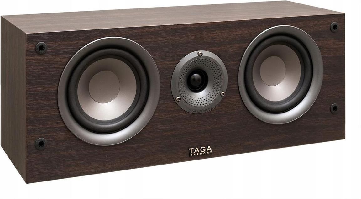 TAGA HARMONY TAV-807C Kolumna centralna Wariant wykończenia: Modern Wenge TWOJA MUZYCZNA I FILMOWA PODRÓŻ! Nowa Generacja serii Audio-Video! Nowa generacja serii Audio-Video nie jest ewolucją poprzedniej – to całkowicie nowe podejście do projektowania i dźwięku tej linii. Audio-Video od lat jest liderem w swojej grupie cenowej, pod względem świetnej stylistyki i brzmienia oferowanych w przystępnych cenach. Styl, materiały oraz jakość dźwięku nowej generacji Audio-Video jeszcze bardziej umacnia jej pozycję jako lidera w swoim segmencie i daleko poza nim. Podczas projektowania TAV-807C naszym celem było stworzenie pięknej kolumny centralnej o świetnym dźwięku, która będzie oferowana w przystępnej cenie, co jest znakiem rozpoznawczym serii Audio-Video. Jak zawsze skupialiśmy się głównie na intensywnych testach odsłuchowych i dopracowaniu dźwięku, a nie na tworzeniu doskonałych specyfikacji na papierze, ponieważ muzyka i dźwięk to emocje, uczucia i pasja. Efekt końcowy zaowocował kolumną centralną, która oferuje jedwabistą i bogatą średnicę oraz żywe, szczegółowe i krystalicznie czyste tony wysokie, a także bardzo otwartą i „napowietrzoną” scenę dźwiękową, co jest tak istotne dla dźwięku wielokanałowego w muzyce i filmach. TAV-807C ze szczegółowymi i bogatymi wysokimi tonami w połączeniu z otwartą i naturalną średnicą to idealny wybór do odtwarzania ścieżek dźwiękowych filmów i muzyki wielokanałowej z realistyczną dynamiką i czystością. TAV-807C z dumą kontynuuje dziedzictwo swoich poprzedników i udowadnia, że nasza seria Audio-Video to jedna z najlepszych okazji w historii kolumn głośnikowych! KLUCZOWE CECHY oraz zmiany w stosunku do poprzedniej generacji TLIE-I (Taga Low Interference Enclosures) 2-giej generacji obudowy o „niskim poziomie zakłóceń” – zwiększona sztywność w celu redukcji rezonansów: grubsza 18 mm przednia ścianka obudowy. Nowy najwyższej jakości materiał wytłumiający pomaga lepiej “rozbijać” fale stojące, zmniejszać rezonanse i ograniczać zniekształcenia co poprawia płynność i charakterystykę dźwięku we wszystkich zakresach. Nowe logo TAGA Harmony umieszczone na przedniej ściance obudowy - jest eleganckie oraz wskazuje na nasze dążenie i pasję do doskonałej harmonii brzmienia. Ulepszony 1” (25 mm) głośnik wysokotonowy z ultra lekką jedwabną kopułką gwarantuje detaliczną, neutralną i szczegółową prezentację wysokich częstotliwości. Powiększony magnes (Φ70), chłodzenie ferrofluidem i trwała cewka typu flat-wire wytrzymują duże moce wejściowe. TWG-I (Taga WaveGuide) 2-giej generacji panel głośnika wysokotonowego – odpowiednio ukształtowana powierzchnia wraz ze specjalnymi małymi zagłębieniami pełni rolę dyfuzora, który pomaga w równym i szerokim rozpraszaniu dźwięku zarówno na osi głośnika, jak i poza nią. W najnowszej wersji kształt i głębokość zostały przeprojektowane, aby zapewnić lepszy przepływ strumienia dźwięku i jeszcze szersze pole rozpraszania, co pozwala budować bardziej trójwymiarową i naturalną scenę dźwiękową. Zmniejszenie ilości komponentów oznacza lepszą strukturalną sztywność, niższe zniekształcenia i rezonanse. Ulepszony 5.25” (133 mm) głośnik średnio-niskotonowy - ultra-lekka membrana polipropylenowa z elastycznym zawieszeniem z gumy, masywny Φ70 magnes, wytrzymała cewka wraz ze wzmocnionym koszem, są zbudowane, żeby przenosić większe poziomy mocy przez dłuższy okres pracy bez zwiększania temperatury pracy głośnika, co odzwierciedla się jeszcze bogatszym, jedwabistym i bardziej naturalnym brzmieniem średnich tonów. Fabryczne wieszaki ścienne umożliwiają łatwy i szybki montaż na ścianach lub innych konstrukcjach. OBUDOWY TLIE-I (Taga Low Interference Enclosures) – 2-giej generacji obudowy o „niskim poziomie zakłóceń” są wykonane z wysokiej jakości, dużej gęstości płyt MDF o grubości 18 mm (przednia ścianka) i 9 mm ( pozostałe ścianki) w celu zwiększenia ich sztywności i ograniczenia niepożądanych rezonansów. Kształt obudów został perfekcyjnie wykonany pod kątem nie tylko wspaniałego i nowoczesnego wyglądu, ale głównie po to, żeby obniżyć niepożądane rezonanse, rozproszenia lub turbulencje, które mogłyby mieć negatywny wpływ na jakość dźwięku. Najwyższej jakości materiał wytłumiający pomaga lepiej “rozbijać” fale stojące, zmniejszać rezonanse i ograniczać zniekształcenia co poprawia płynność i charakterystykę dźwięku we wszystkich zakresach. Fabryczne wieszaki ścienne umożliwiają łatwy i szybki montaż na ścianach lub innych konstrukcjach. Starannie wyselekcjonowane, wysokiej jakości wykończenia winylowe są bardzo trwałe, eleganckie, imitują strukturę naturalnego drewna i są przyjemne w dotyku. Wykończenia winylowe są schludnie nałożone na obudowy przy użyciu precyzyjnych maszyn w celu zapewnienia najlepszego wyglądu. PRZETWORNIK WYSOKOTONOWY Nabiegunnik Powiększony magnes ferrytowy Płyta nabiegunnikowa Dźwiękochłonna bawełna Miedziana cewka Czarna jedwabna kopułka TWG-I przedni panel głośnika (2 elementy) Ulepszony 1” (25 mm) głośnik wysokotonowy z ultra lekką jedwabną kopułką gwarantuje detaliczną, neutralną i szczegółową prezentację wysokich częstotliwości. Powiększony magnes (Φ70), chłodzenie ferrofluidem i trwała cewka typu flat-wire wytrzymują duże moce wejściowe. TWG-I (Taga WaveGuide) 2-giej generacji panel głośnika wysokotonowego - dpowiednio ukształtowana powierzchnia wraz ze specjalnymi małymi zagłębieniami pełni rolę dyfuzora, który pomaga w równym i szerokim rozpraszaniu dźwięku zarówno na osi głośnika, jak i poza nią. W najnowszej wersji kształt i głębokość zostały przeprojektowane, aby zapewnić lepszy przepływ strumienia dźwięku i jeszcze szersze pole rozpraszania, co pozwala budować bardzie