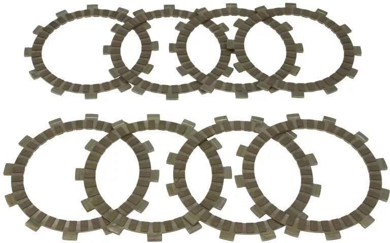 Komplet tarcz ciernych sprzęgła pasuje do: kawasaki kdx, kx 125/200 1989-1994. średnica zewnętrzna [mm]: 134 Średnica [mm]: 120 Średnica wewnętrzna [mm]: 100 Grubość [mm]: 3 Ilość: 8 Ciężar [kg]: 0,514