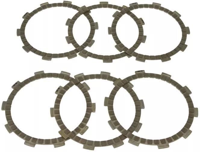 Komplet tarcz ciernych sprzęgła pasuje do: yamaha dt 125 1989-1990. średnica zewnętrzna [mm]: 125,2 Średnica [mm]: 115,2 Średnica wewnętrzna [mm]: 100 Grubość [mm]: 3 Ilość: 6 Ciężar [kg]: 0,393