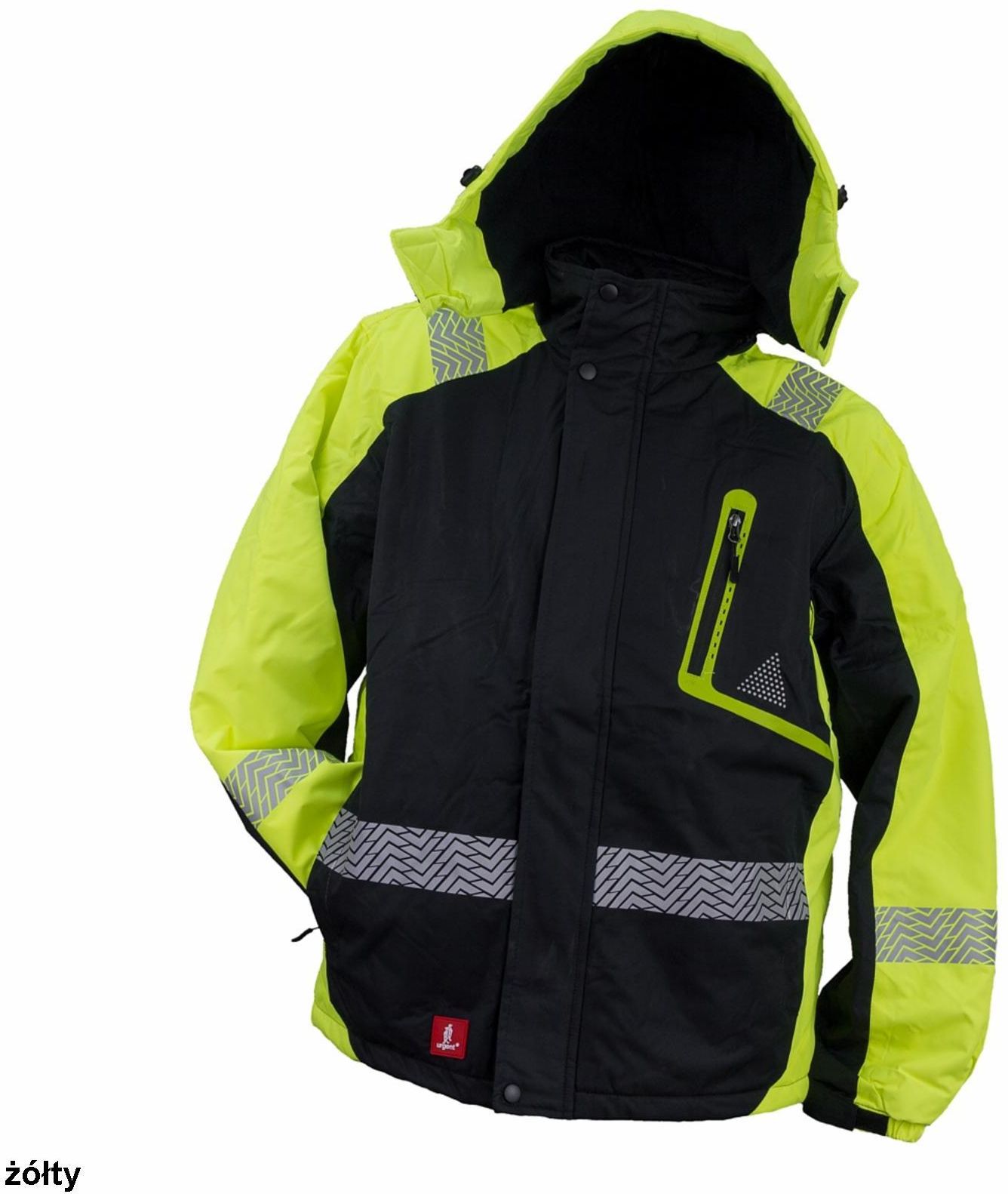 Kurtka robocza męska bhp ocieplana zimowa OSTRZEGAWCZA odblaskowa kaptur - kurtka robocza ocieplana - materiał: 100% poliester - wewnętrzna strona ocieplana polarem - kaptur odpinany na suwak na dole wykończona ściągaczem, co chroni użytkownika przed wiatrem cztery kieszenie na suwak: dwie boczne …