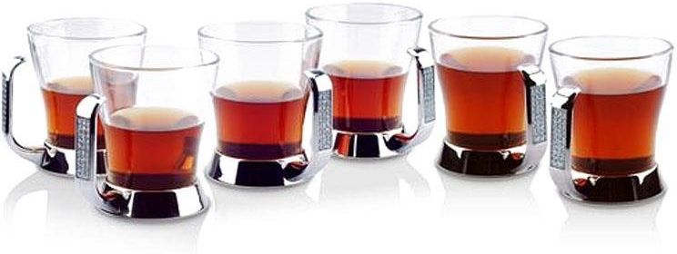 Elegancki komplet szklanek na metalowej podstawie z uchem. Starannie wykonany zestaw bardzo dobrze się prezentuje na stole, wygodne uszka nie nagrzewają się od ciepłej zawartości, dzięki czemu bezpiecznie i komfortowo można z nich spożywać ulubione napoje. Rewelacyjny produkt zarówno do użytku …