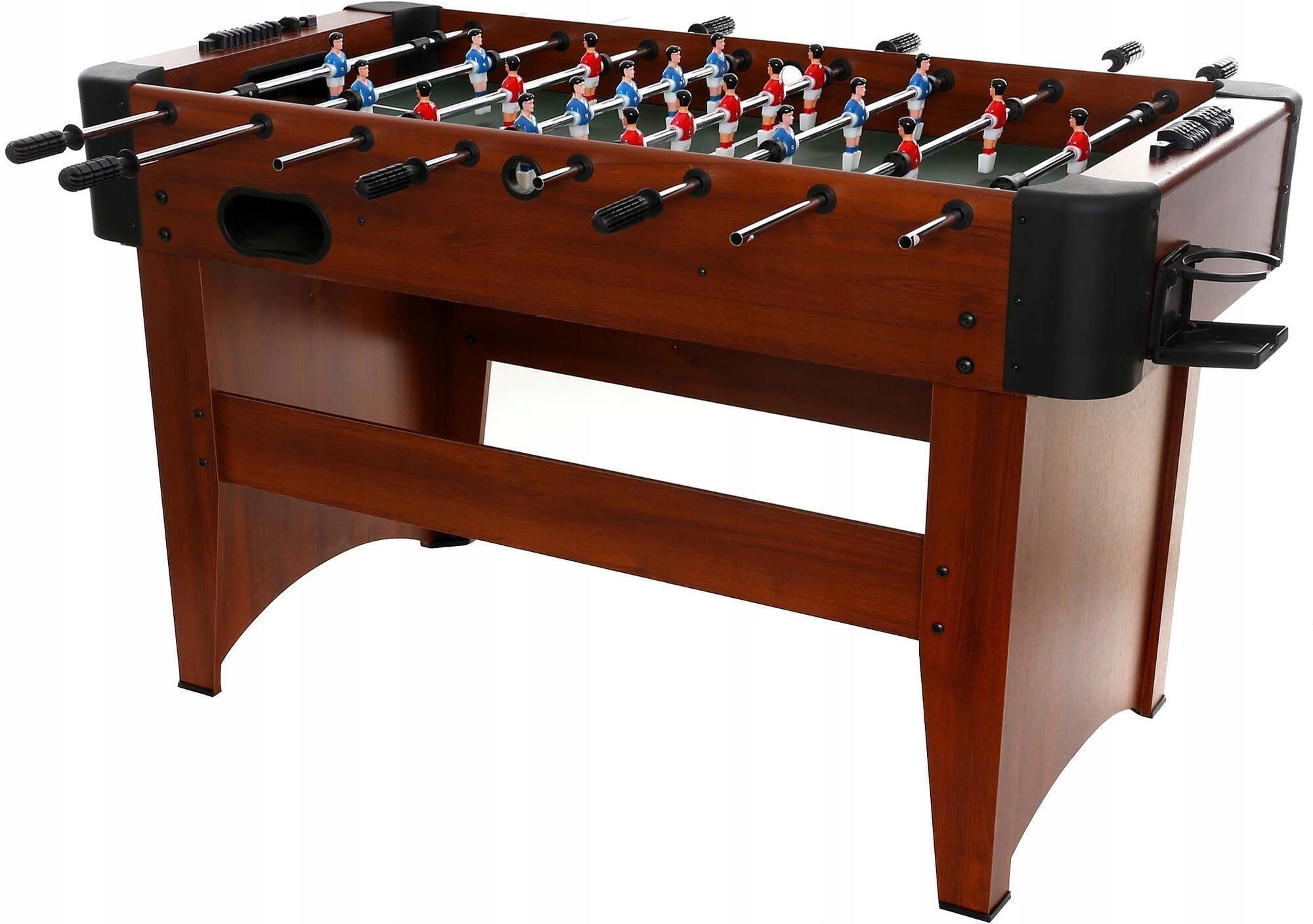 PIŁKARZYKI MAXI BRĄZOWE Materiał: Impregnowała i wytrzymała płyta MDF Kolorowa powłoka jak na zdjęciach Imitacja drewna Wzmacniane pole gry - belki od spodu stołu Antypoślizgowe rączki Materiał wykonania piłkarzyków ABS Podwyższone boczne bandy Stół do samodzielnego złożenia Boczne uchwyty na napoje Łatwy i bezproblemowy montaż Wymiary: 122 cm x 60,5 cm Wymiary pola do gry: 106 cm x 58,5 cm Wysokość stołu: ok 80 cm Wysokość piłkarzyków: ok 10 cm Wymiary bramki: 15,5 cm x 6 cm 2 piłeczki 2 liczydła punktów 22 piłkarzyki Boczne uchwyty na napoje