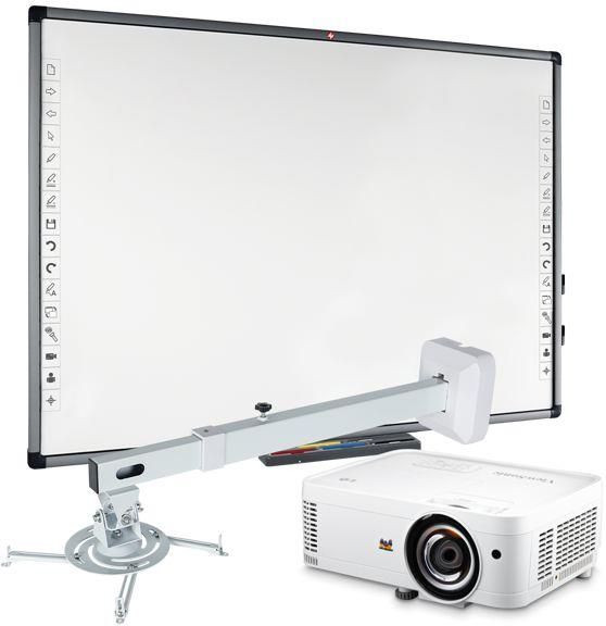Zestaw interaktywny Avtek Panorama LED: tablica interaktywna Avtek TT-Board 90 Pro + Projektor ViewSonic LS560W + uchwyt WallMount 1200 Skład zestawu: Tablica interaktywna Avtek TT-Board 90 Pro panorama 90″ (przekątna robocza 90″, 10 punktów dotyku, ceramiczna powierzchnia, paski skrótów po bokach) projektor do bliskiej projekcji ViewSonic LS560W (typ:LED, jasność 3000 ANSIlm, kontrast 3000000:1, żywotność lampy do 30000 h) uchwyt do projektora WallMount 1200 Tablica interaktywna Avtek TT-Board 90 Pro: Tablica interaktywna 90 Pro ma aż 90 cali przekątnej powierzchni roboczej. Panoramiczny format 16:10 oznacza, że tablica jest niższa i dłuższa niż tablice 4:3, co pozwala na łatwiejsze wykorzystanie całej powierzchni. przekątna robocza 90″ format 16:9 ceramiczna powierzchnia półka interaktywna 3 lata gwarancji po rejestracji zakupu precyzyjna technologia podczerwieni pozwala na jednoczesne korzystanie z 10 punktów dotyku, paski skrótów po obu stronach dają szybki dostęp do kluczowych funkcji, a interaktywna półka umożliwia szybką zmianę kolorów przez zwykłe podniesienie pisaka dzięki wykorzystaniu porcelanowej powierzchni PolyVision e3 TT-Board Pro otrzymuje niezwykle wysokie parametry wytrzymałości i suchościeralności przy zachowaniu wysokich jakości obrazu wyświetlanego z projektora. bardzo wysoka trwałość i suchościeralność pozwala na bezproblemowe korzystanie z powierzchni jak ze zwykłej tablicy możliwość przyczepiania magnesów do powierzchni tablicy wyświetlanie obrazu z projektora z zachowaniem bardzo wysokich parametrów obrazu odporność powierzchni na uszkodzenia doskonale sprawdza się w warunkach szkolnych Wymiary tablicy 2059 x 1249 x 42 mm, Wymiary powierzchni roboczej 2019 x 1210 mm, Obszar projekcyjny 1974 x 1164 Projektor krótkoogniskowy WXGA ViewSonic LS560W: jasność 3000 LED lm zapewnia jasny i szczegółowy obraz żywotność lampy do 30 000 h kontrast3000000:1 precyzyjne odwzorowanie kolorów dzięki Technologii Cinema Super Color+ złącza: 1x HDMI gwarancja: 2 lata na projektor oraz 2 lata na lampę (do 20000 h pracy) Zaawansowana technologia LED trzeciej generacji eliminuje toksyczną rtęć oraz koszty i problemy związany z częstą wymianą lamp, zapewniając wysoką jasność do 30 000 godzin. Dodatkowo, dzięki zastosowaniu technologii Ostar Projection Power LED firmy OSRAM, projektor LED jest zarówno energooszczędny, jak i ekonomiczny, zużywając mniej energii. Uchwyt do projektora Avtek WallMount 1200 NEXT Teleskopowy wysięgnik( 78 do 120 cm) Maksymalny rozstaw otworów mocujących projektora – 39 cm Pasuje do większości projektorów krótkoogniskowych na rynku Maskownica płyty ściennej Możliwość ukrycia kabli w środku uchwytu