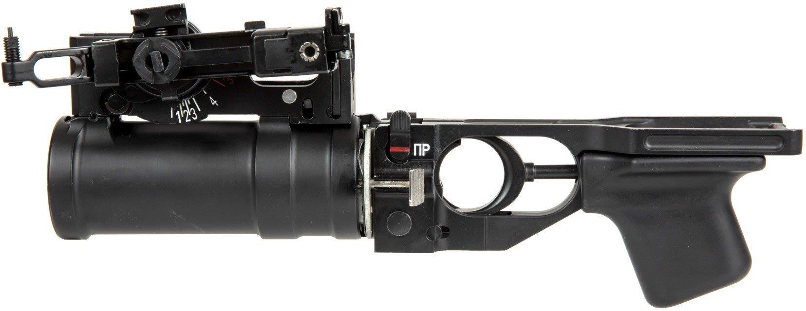 Replika granatnika GP-25 przeznaczonego do karabinków z rodziny AK. Granatnik niemal w całości wykonany został z metalu, jedynie chwyt wytworzono z odpornego na uszkodzenia tworzywa sztucznego. W replice zastosowano regulowane, mechaniczne przyrządy celownicze. Granatnik został wyposażony w …