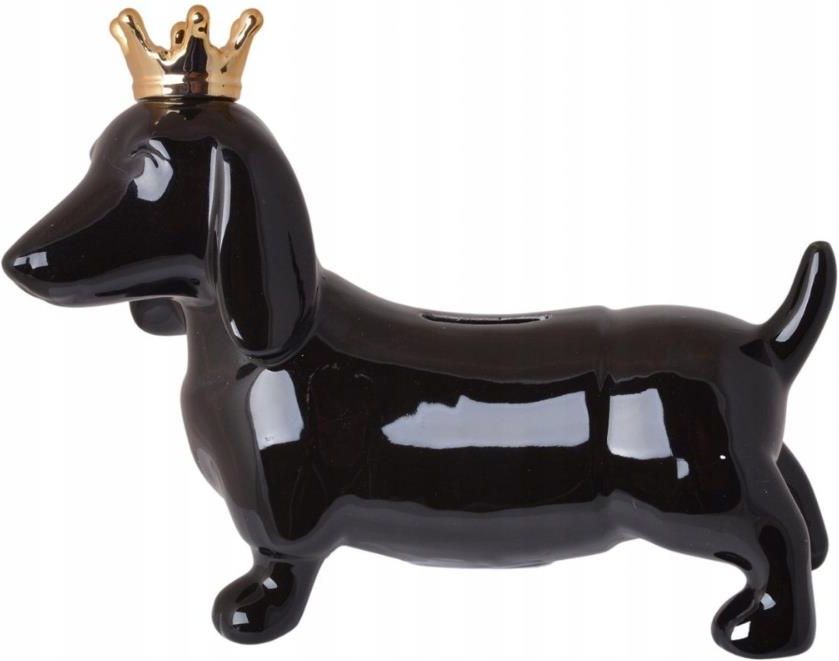 Skarbonka w kształcie jamnika, wykonana w kolorze czarnym, to elegancki i stylowy element dekoracyjny. Na głowie psa znajduje się złota korona, co dodaje mu królewskiego charakteru. Jest nie tylko praktycznym miejscem do przechowywania oszczędności, ale także wyjątkowym dodatkiem, który przyciąga uwagę swoim wyrafinowanym wyglądem. Idealna jako prezent lub ozdoba wnętrza dla miłośników psów i oryginalnych akcesoriów.