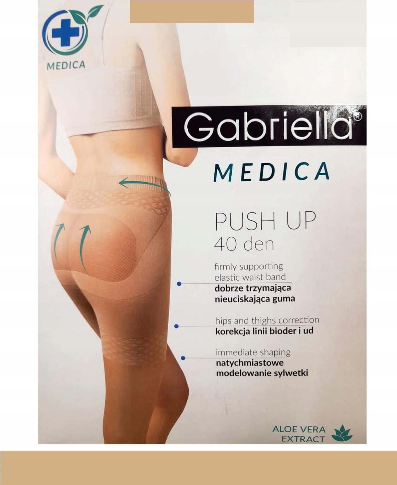 GABRIELLA MEDICA PUSH UP Rajstopy 40 DEN 3-M / Neutro Gładkie rajstopy wyszczuplające i korygujące sylwetkę ze specjalną częścią majteczkową uciskającą brzuch i biodra oraz podnoszącą pośladki. Półkryjące, matowe, wykonane z elastycznej przędzy zmiękczonej ekstraktem z aloesu zapewniającej …