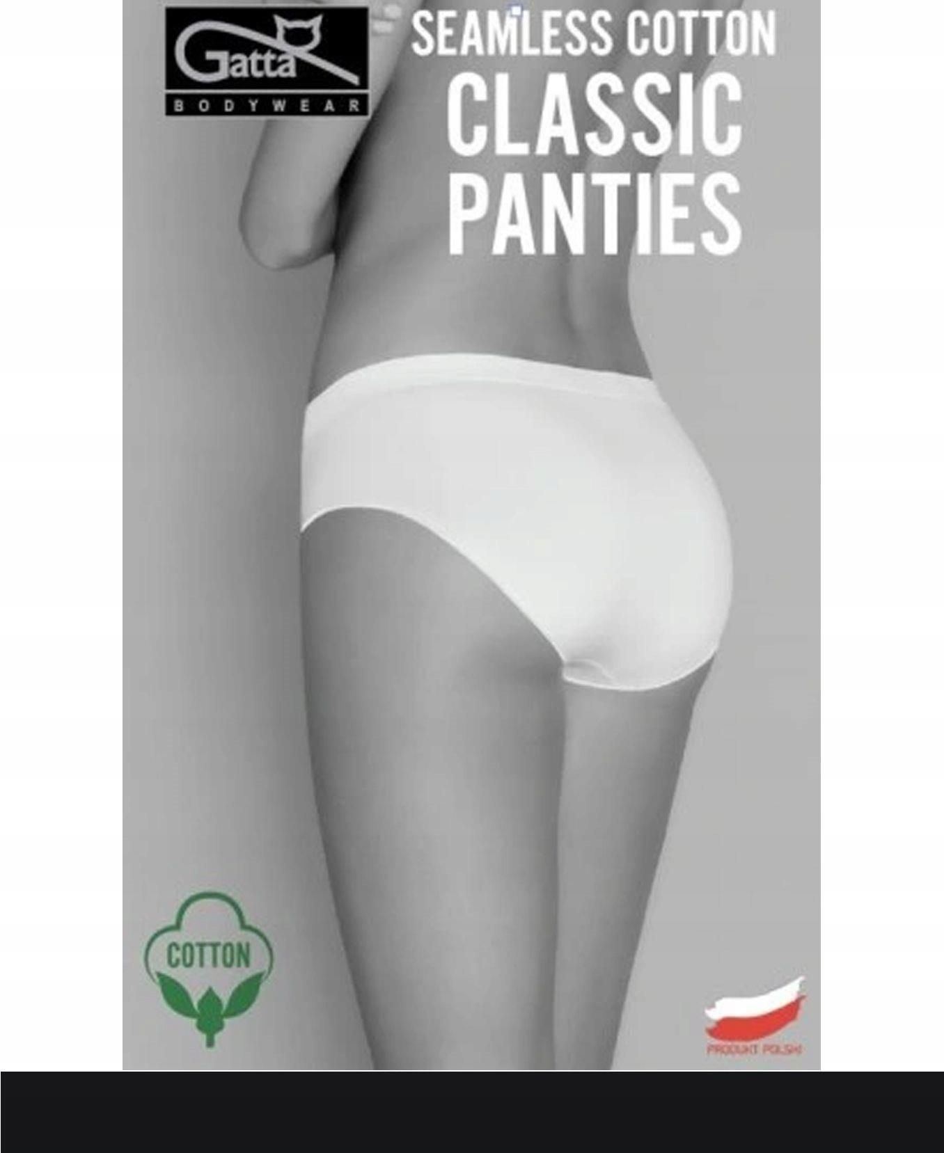 GATTA Seamless Cotton Classic Panties L / Black Majtki damskie z wyższym stanem wykonane z wysokogatunkowej cienkiej bawełny. Zastosowanie bezszwowej techniki dziania i dodatek poliamidu z elastanem gwarantuje ich elastyczność i dopasowanie, a delikatne wykończenie wycięć wokół bikini podnosi …
