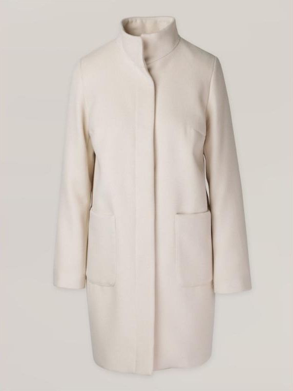 Gładki płaszcz damski w kolorze ecru Krzywiń
