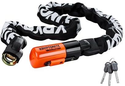 Łańcuch Kryptonite Evolution 1012 wzmocniona głowica zamka z owalnym poprzecznym zastrzałem sześciokątne ogniwa łańcucha ze stali manganowej 3T poziom bezpieczeństwa: 8/10 w skali Kryptonite wysokogatunkowy cylinder tarczowy przesuwna osłona przeciwpyłowa nylonowy rękaw ochronny średnica ogniw: 10 …