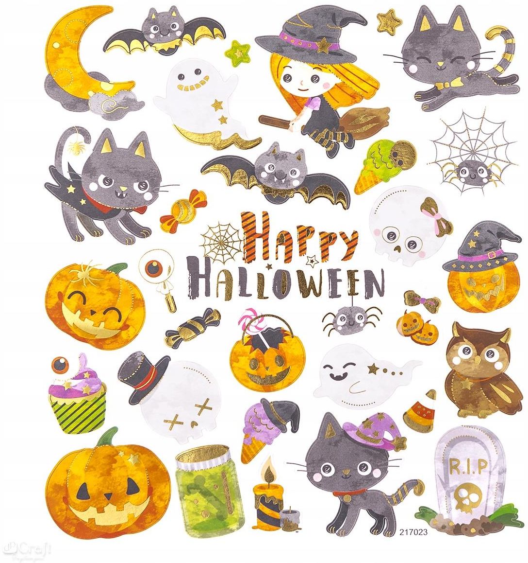 Naklejki papierowe Halloween 32szt. DALPRINT Producent: Dalprint Kod produktu: DPNK-146 Naklejki Halloween są idealne do kreatywnych prac dziecięcych. Złote zdobienia nadają naklejkom połysku, dzięki czemu prezentują się stylowo na wszelkich projektach kreatywnych. Nalepki są idealne do dekorowania …