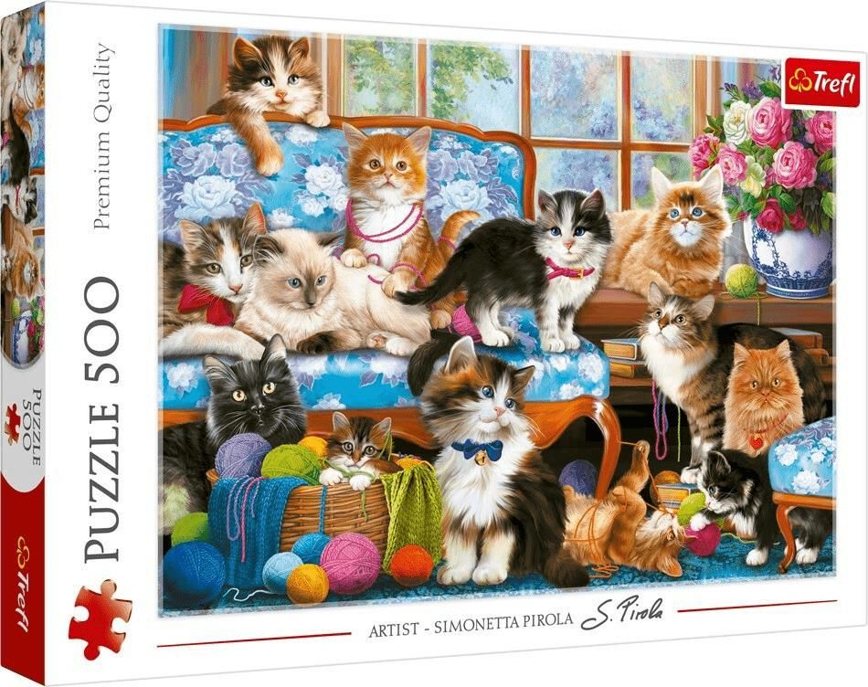 Trefl Puzzle 500el. Kocia rodzina 37425 Puzzle 500 elementów zostały stworzone z myślą o wszystkich miłośniczkach i miłośnikach układanek.  Szukasz pomysłu na miły wieczór w domowym zaciszu? Układanie puzzli to świetny sposób na spędzenie wolnego czasu w gronie przyjaciół i rodziny, a do tego rewelacyjny trening dla mózgu.