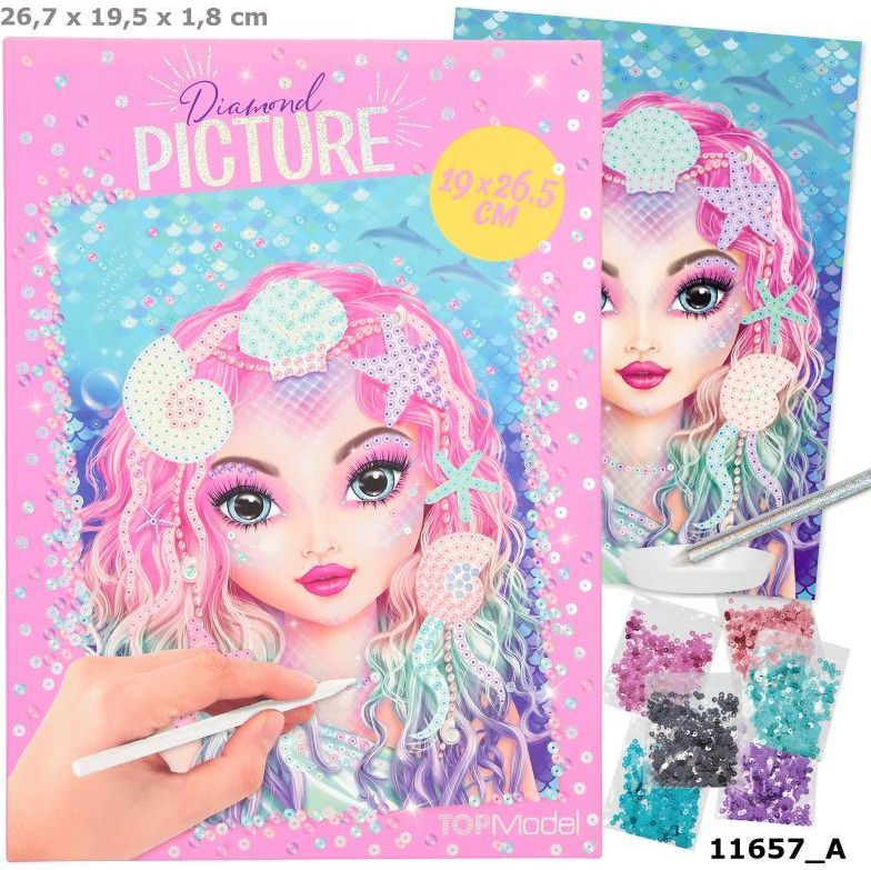 TOP MODEL ZESTAW KREATYWN DIAMENTOWY OBRAZ Seria: TOP MODEL Numer katalogowy: 11657 Wiek: 6+ Fantastycznie lśniący: dzięki programowi "Stwórz swój diament" z TOPModel możesz w prosty sposób stworzyć niesamowity obraz. Zawiera 6 różnych cekinów, które nanosi się na szablon obrazka za pomocą dołączonego "patyczka". Dodatkowo: mała miseczka do sortowania cekinów. Format motywu obrazka: 19 x 26,5 cm Długość: 1,8 cm Szerokość: 19,5 cm Wysokość: 26,8 cm Waga: 0,199 kg