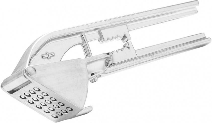 Miałem dokładnie ten sam model aluminiowy tego producenta (Florina kupiony kiedyś w Dino na promocji za ok. 10zł), ale z poważnym mankamentem - bardzo szybko trzasnął nit w zawiasie (chyba też aluminiowy), który zastąpiłem zwykłym gwoździem nierdzewnym o dopasowanej średnicy i zagiętym z drugiej strony kombinerkami, żeby nie wypadał. I tak służył ładnych parę lat, aż trzasnęła rączka przy samym pojemniczku i teraz szukam czegoś nowego i oby trwalszego. Kolce ładnie przepychały czosnek lub cebulę przez otworki i niewiele wychodziło bokami - to tyle jeśli chodzi o zalety.
