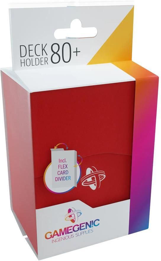 Czerwony deck box na 80 podwójnie zakoszulkowanych kart, idealne pudełko na Twoje talie CZYM JEST DECK HOLDER 80+ Ten codzienny produkt oferuje graczom sprytne i szybkie rozwiązanie problemu przechowywania i organizowania swoich talii. Deck Holder 80+ jest idealnym pudełkiem na talie umożliwiającym bezpieczne przechowywanie do 80 podwójnie zakoszulkowanych kart. Jego samozamykająca się pokrywa może zostać otwarta do 180° dzięki zastosowaniu innowacyjnej technologii COBRA NECK na grzbiecie. Poręczny pasek do pisania umożliwia indywidualne etykietowanie. Dołączony jest również jeden Flex Card Divider. CECHY Mieści do 80 podwójnie zakoszulkowanych kart* Wytrzymałe pudełko z samozamykającą się pokrywą + pasek do pisania Technologia Cobra Neck. Klapa zamknięcia może zostać otwarta do 180° w celu łatwego dostępu do talii Klapa zamknięcia może zostać otwarta do 180° w celu łatwego dostępu do talii Samozamknięcie, nie wymaga Velcro ani podobnych Wytrzymałe pudełko na talie zawiera FLEX Card Divider do oddzielania kart Solidne spasowanie Brak związków kwasowych. Bez domieszek polichlorku winylu. Wykonany z wytrzymałego materiału PP (Polypropylen) * Optymalizacja dotyczy koszulek Gamegenic. Koszulki innych firm mogą wpłynąć na pojemność/kompatybilność.