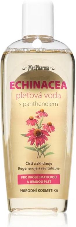 MedPharma Echinacea pleťová voda, 150 ml, Specjalistyczna pielęgnacja skóry dla mężczyzn, Równie ważne, jak sam proces oczyszczania, jest przejście od oczyszczania do późniejszej pielęgnacji skóry. Poszczególne etapy tych procesów są idealnie połączone, a cała rutyna jest wzbogacona o tonik do skóryMedPharma Echinacea pleťová voda. Zapewnia on oczyszczenie skóry, podczas którego usuwa resztki makijażu, zanieczyszczeń oraz produktów do mycia, jednocześnie delikatnie tonizując skórę. Sprawia, że jest ona idealnie czysta i przygotowana do dalszych kroków, a także odświeżona, złagodzona i zrównoważona. Właściwości: łagodzi i chroni skórę nawilża i odświeża skórę ma działania kojące