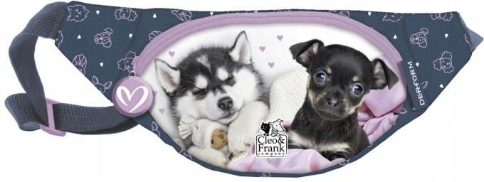Nerka na biodra Cleo i Frank 38 pies DERFORM __________________________________________________________________ Torba na biodra z motywem licencyjnym. Wyposażenie: - 1 kieszeń na zamek z przodu, wykończony ozdobną zawieszką - 1 bezpieczna kieszeń z tyłu, Torbę można nosić na biodrach lub przełożoną …
