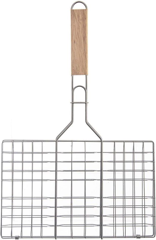 Ruszt do grillowania metalowy 35x55 cm ZAMYKANY - Dwustronny, zamykany ruszt do przygotowywania potraw na grillu. Wymiary powierzchni rusztu: 35 x 26 cm, długość z rączką wynosi 55 cm. WYTRZYMAŁY - Wykonany z wysokiej jakości metalu chromowanego. Posiada wygodny uchwyt wykonany z drewna …