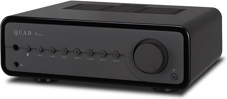 Wzmacniacz stereofoniczny Quad Vena Metal Specyfikacja techniczna: - Sekcja przedwzmacniacza - Czułość wejścia AUX: 450mV - Impedancja wejścia AUX: 10 kΩ (niezbalansowane) - Napięcie wyjścia: 2,3V(max) - Impedancja Wyjściowa: 470Ω - Wejścia: 2 X RCA (AUX1, AUX2) - Wyjścia: 1x RCA - Sekcja mocy wzmacniacza - Moc znamionowa: 2 x 45W - Wzmocnienie: 32dB - Pasmo przenoszenia: -0,5dB (20Hz-20kHz, ref. 1kHz) - Współczynnik zniekształceń harmonicznych (THD): <0,009% (10W, 1kHz) - Wskaźnik sygnału na zniekształcenie: ≥ 108dB (mierzona, ref. 46W) - Sekcja cyfrowa - Przetwornik cyfrowo-analogowy: CIRRUS LOGIC: CS4398 - Częstotliwośc próbkowania: 44,1-192kHz - Wejście cyfrowe: 1x koaksjalne, 2x optyczne TOSlink, 1x PC USB, 1x Bluetooth, 1x dok do produktów Apple - Wyjście cyfrowe: 1x koaksjalne, 1x opyczne TOSlink - Wymagania mocy: 100-120V ~ 50/ 60Hz, 220-240V ~ 50/60Hz - Waga netto: 6.10 kg - Wymiary produktu: 313 x 94 x 302 mm Warunki gwarancji: Sprzęt marki Quad objęty jest 2-letnią gwarancją, realizowaną w systemie door-to-door przez autoryzowany centralny serwis.
