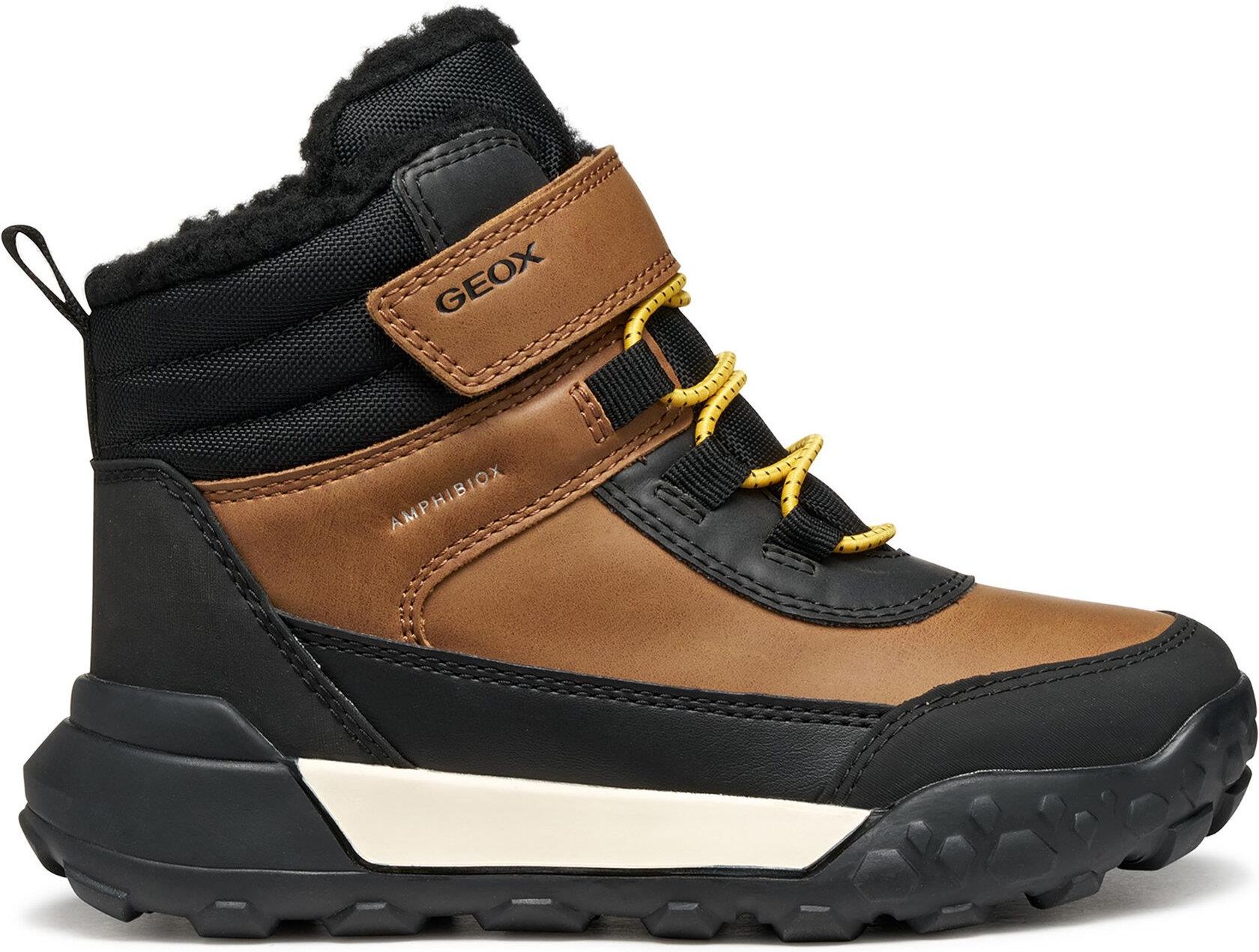 Buty Trzewiki dla Dzieci Geox J Trekkyup B Abx Brown J46MBE Brązowe Symbol: GE200-c Kolor: Brązowy / Czarny Rozmiar: 27 (17 cm) Wiecej rozmiarów i kolorów znajdziesz na pozostałych aukcjach. Opis produktu Trzewiki Geox J Trekkyup to praktyczny wybór dla aktywnych dzieci, które potrzebują niezawodnego obuwia zimowego! Podwyższona cholewka buta za kostkę to połączenie imitacji skóry i materiału, dzięki czemu obuwie jest odporne na warunki atmosferyczne i łatwe w utrzymaniu czystości. Wnętrze buta ocieplone miękkim futerkiem, zadba o ciepło stopy Twojego dziecka w chłodniejsze dni. Elastyczne sznurowadła oraz zapięcie na rzep pozwoli na szybkie i wygodne zakładanie oraz idealne dopasowanie do stopy. Technologia Amphibiox gwarantuje wodoodporność i oddychalność, zapewniając ochronę i termoregulację. Zastosowanie technologi Geox Respira w podeszwie, zapewni jak najlepszą cyrkulację powietrza i wysoki stopień regulacji temperatury. Uniwersalne śniegowce na co dzień, doskonałe do szkoły, zabaw na śniegu czy spacerów w trudnych warunkach pogodowych. Galeria zdjęć