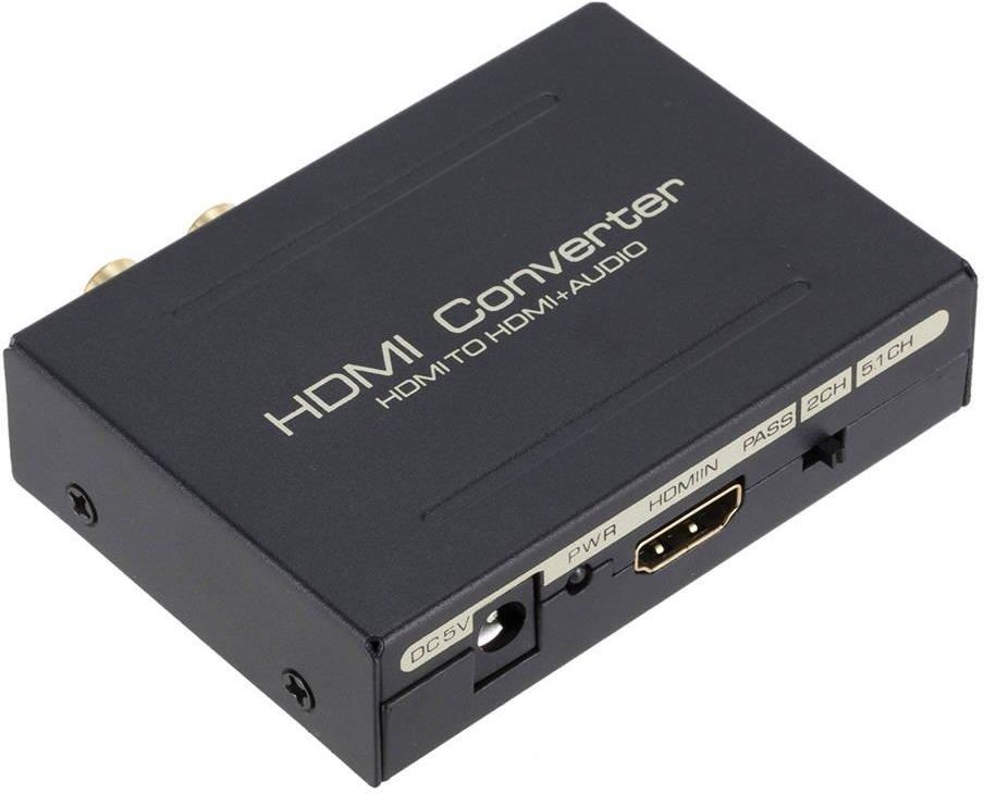 Extractor HDMI na HDMI + Audio (R/L+SPDiF) Spacetronik SPH-AE07 Extractor HDMI na HDMI + Audio (R/L+SPDIF) pozwala na podłączenie urządzenia wysyłającego sygnał audio i video (tuner, konsola, dvd, blu-ray) do telewizora kablem HDMI. Dodatkowo można wyodrębnić sygnał audio z urządzenia i przesłać go do amplitunera kina domowego lub innego tego typu urządzenia. Dzięki takiemu rozwiązaniu dźwięk będzie słyszalny standardowo z głośników telewizora i dodatkowo z drugiego źródła po włączeniu amplitunera. Ciekawe rozwiązanie gdy chcemy panować i sami decydować kiedy dźwięk ma być słyszalny z danego urządzenia. Najważniejsze funkcje Jedno wejście HDMI do jednego wyjścia HDMI + cyfrowe wyjście SPDIF (optyczne) audio (tryb 2CH / 5.1CH) i stereofoniczne wyjście audio 2x RCA R/L SPDIF i L / R obsługują wyjście audio oddzielnie, bez potrzeby podłączenia telewizora / monitora; Rozdzielczość wejściowa do 4K x 2K, 1080P / 60Hz, 3D / 24Hz. Obsługuje głębię kolory 24 bit / 30bit, 36bit na kanał; Posiada przełącznik audio 2CH-5.1CH Cechy produktu Wejście 1 x HDMI IN, 1 x Micro USB Power Port, 3 x EDID Audio(Pass/2CH/5.1CH) Wyjścia 1 x HDMI OUT, 1 x SPDIF (Optical), 1 x RCA Stereo R/L Rozdzielczość: 4K x 2K, 24/50/60fs/1080P/1080i/720p/576p/576i/480p/480i Maksymalne długości przewodów: do wejścia HDMI do 15m, od wyjścia HDMI do 20m Wsparcie HDMI 1.4b Wymiary: 84.5X61.8X21 (mm) Zestaw zawiera HDMI Audio Extractor Instrukcja obsługi EN Zasilacz 230V - 5V HDMIEX07