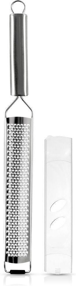 Płaska tarka kuchenna o długości 38 cm. Wykonana ze stali nierdzewnej. Idealna do tarcia sera, cytryny, czekolady, imbiru, cynamonu czy gałki muszkatołowej.
